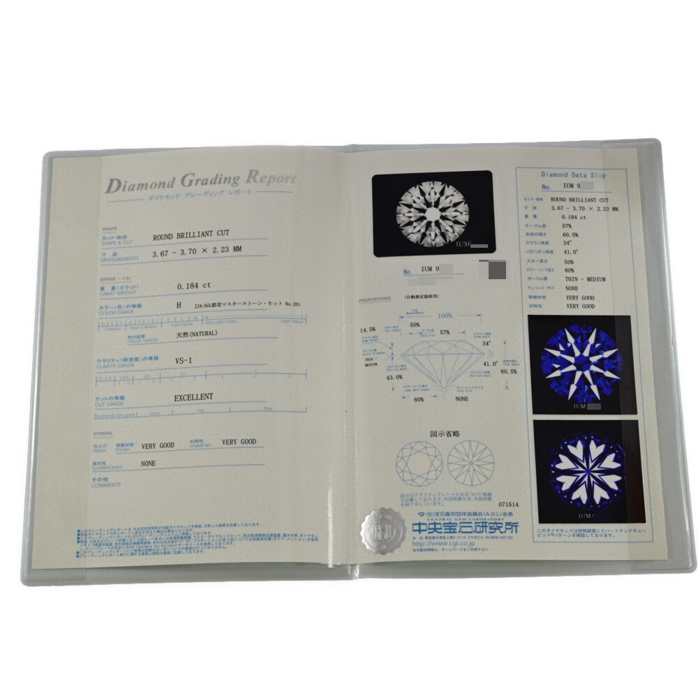 鑑定機関:中央宝石研究所ダイヤモンドグレーディングレポート