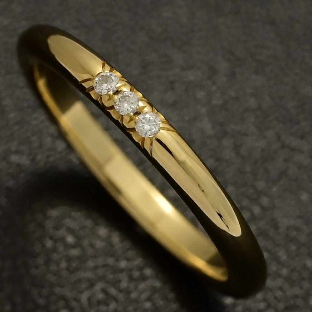 TIFFANY & Co.ティファニー フォーエバーウェディング 2mm バンド 3P・ダイヤモンド リング・指輪/K18YG/750-2.4g/8号/#48【♀】【S】【レディース】★■594846【中古】