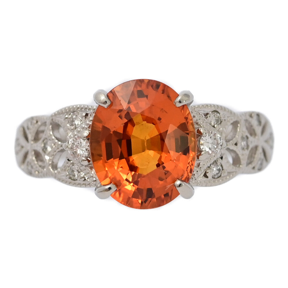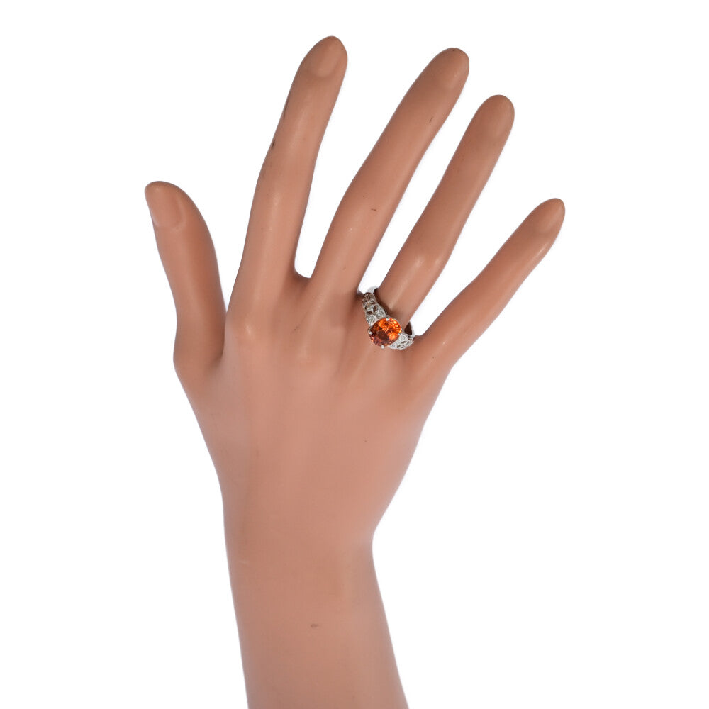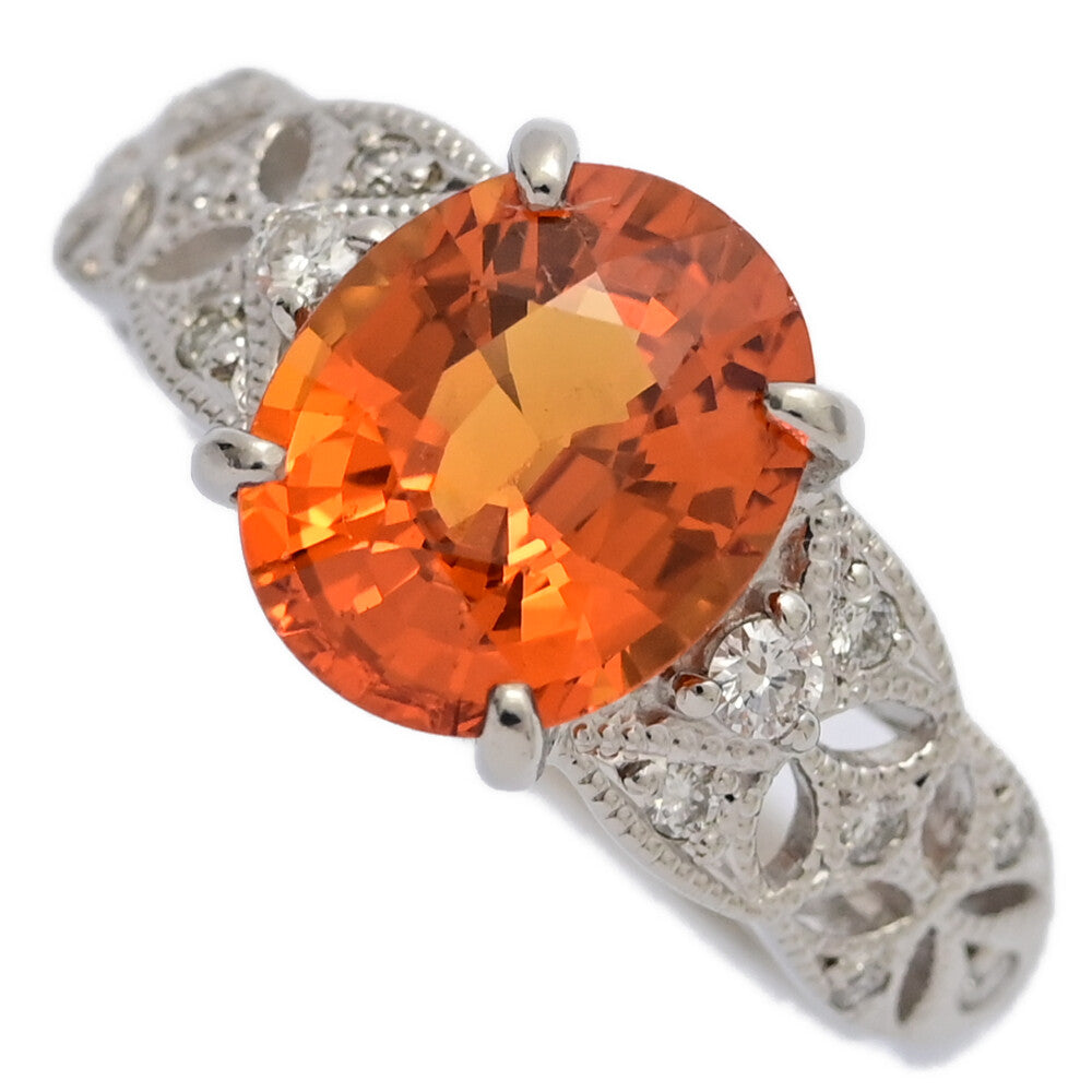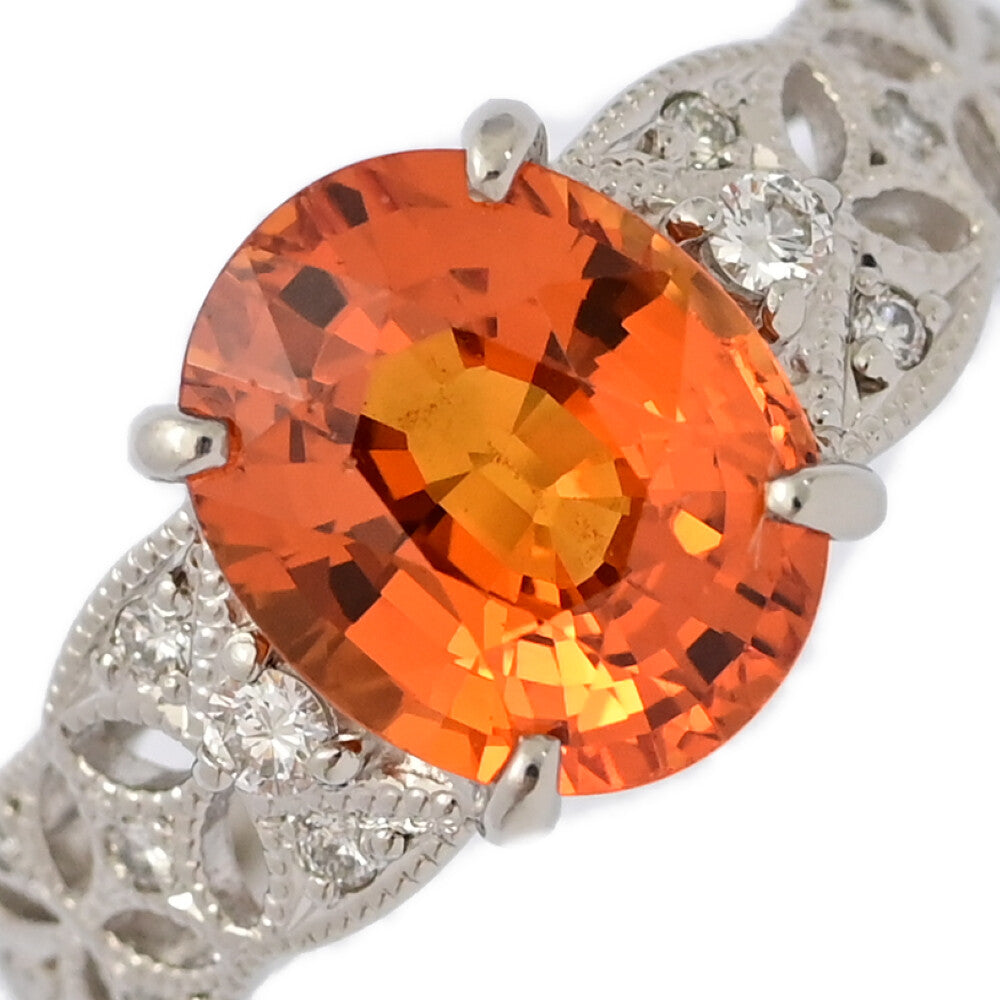 GA3.36ct/FD:0.15ct/スペサルティンガーネット・ガーネット・ダイヤモンドリング・指輪/Pt900-6.6g/12号/#52/翌日配送可【♀】【N】【レディース】★■589037【中古】