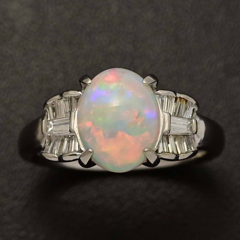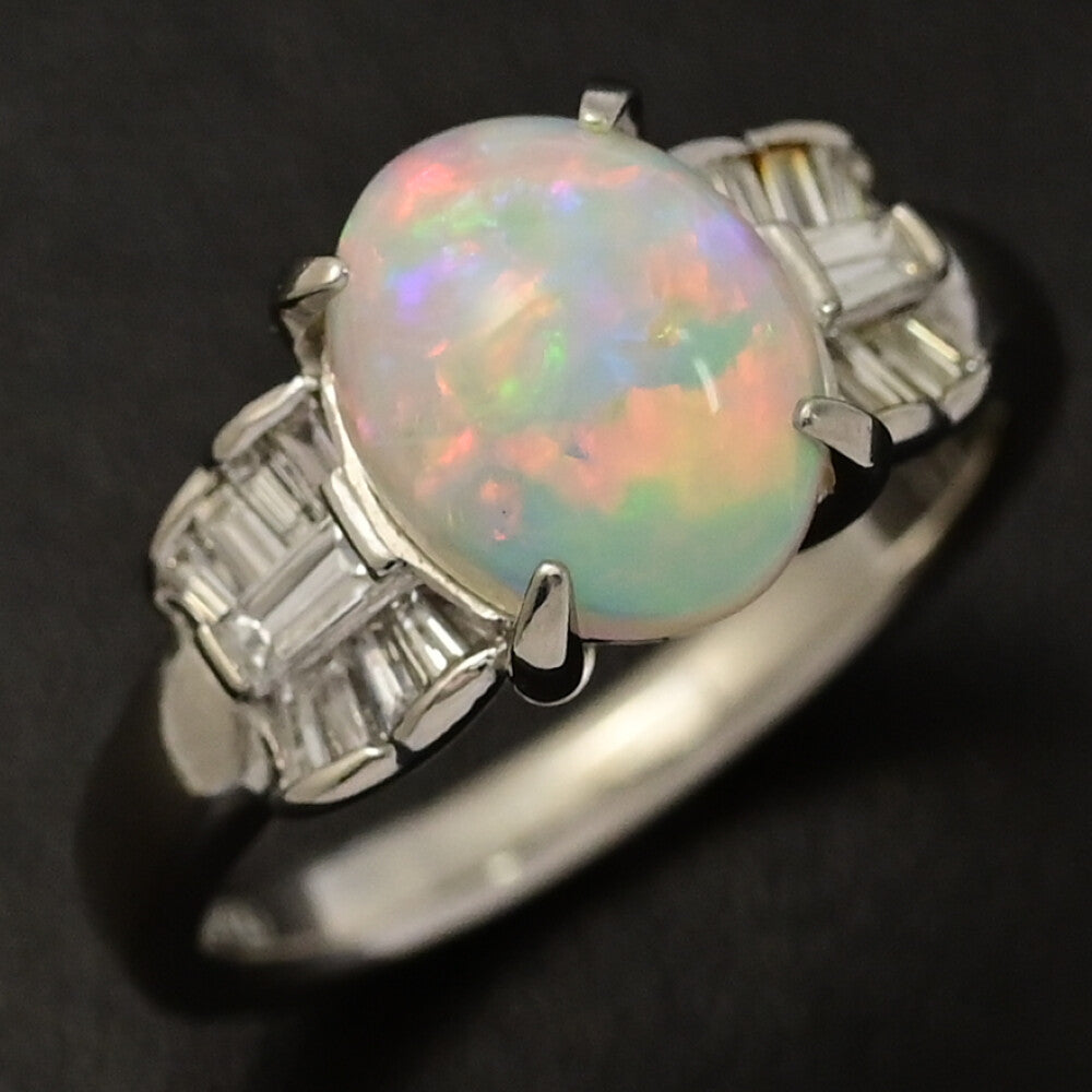 OP1.51ct/FD:0.43ct/10月誕生石 1P・オパール・ダイヤモンド リング・指輪/Pt900-7.1g/12号/#52/プラチナ/プレゼント/記念日【♀】【S】【レディース】★■593906【中古】