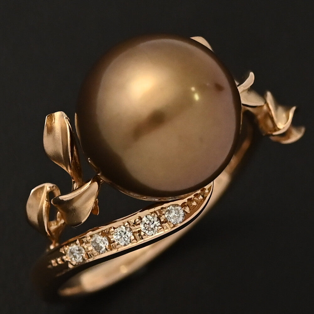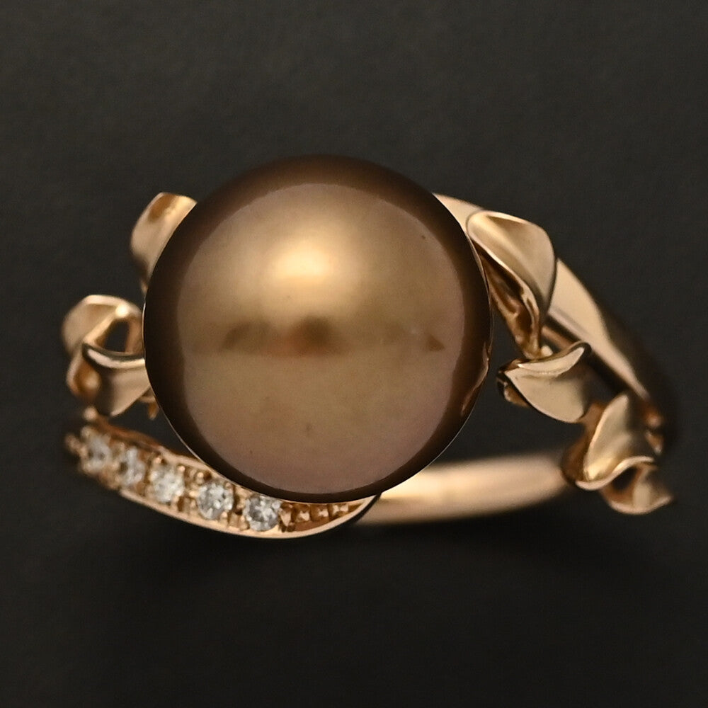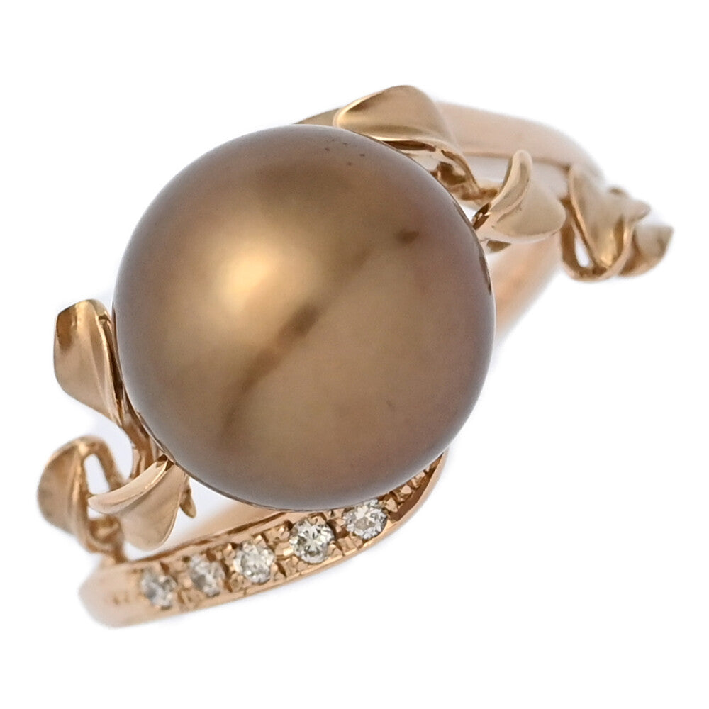 ピンクゴールド 黒蝶真珠/タヒチパール/Φ10.3mm 真珠(パール)・ダイヤモンドリング/K18PG/750-5.6g/FD:0.04ct/11号/#51【♀】【S】【レディース】★■589050【中古】