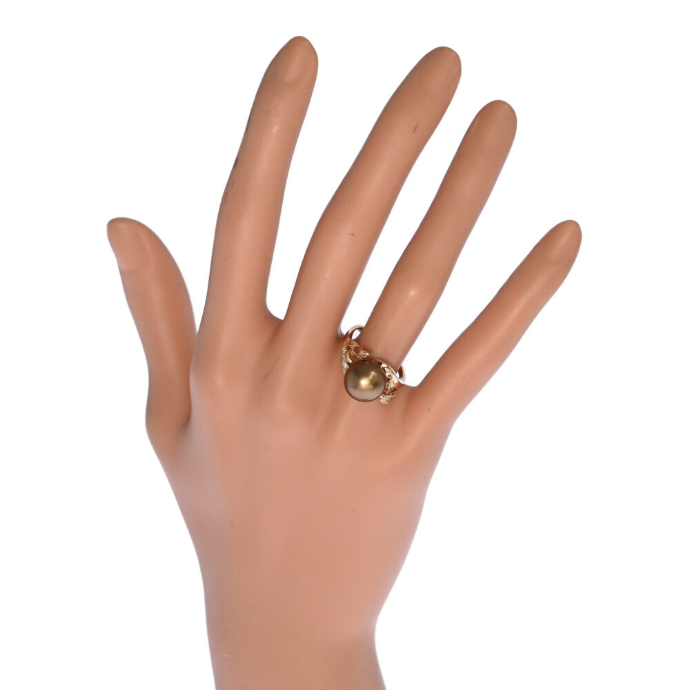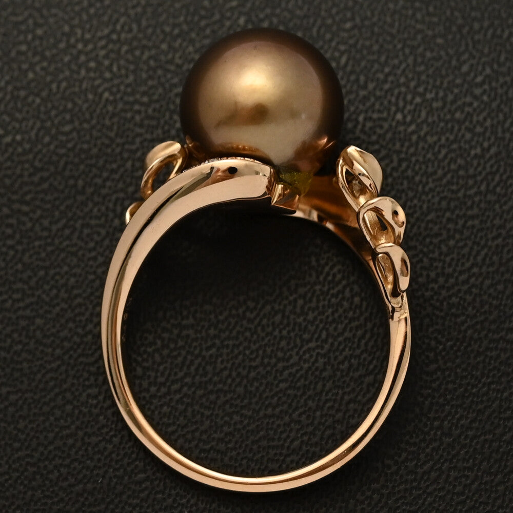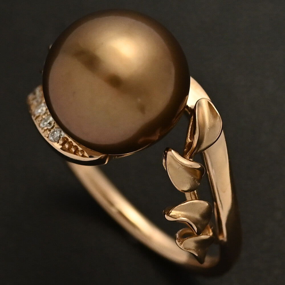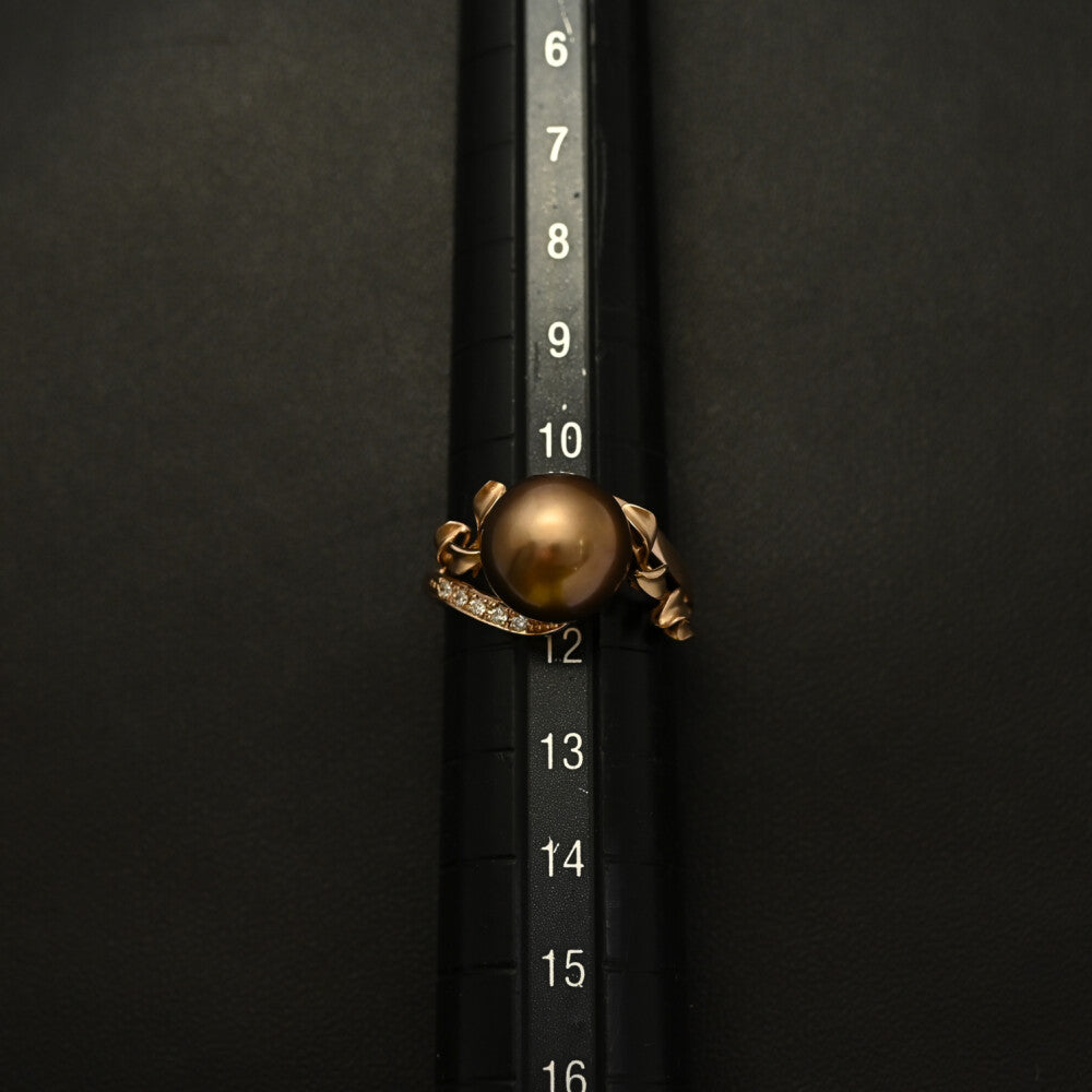 ピンクゴールド 黒蝶真珠/タヒチパール/Φ10.3mm 真珠(パール)・ダイヤモンドリング/K18PG/750-5.6g/FD:0.04ct/11号/#51【♀】【S】【レディース】★■589050【中古】
