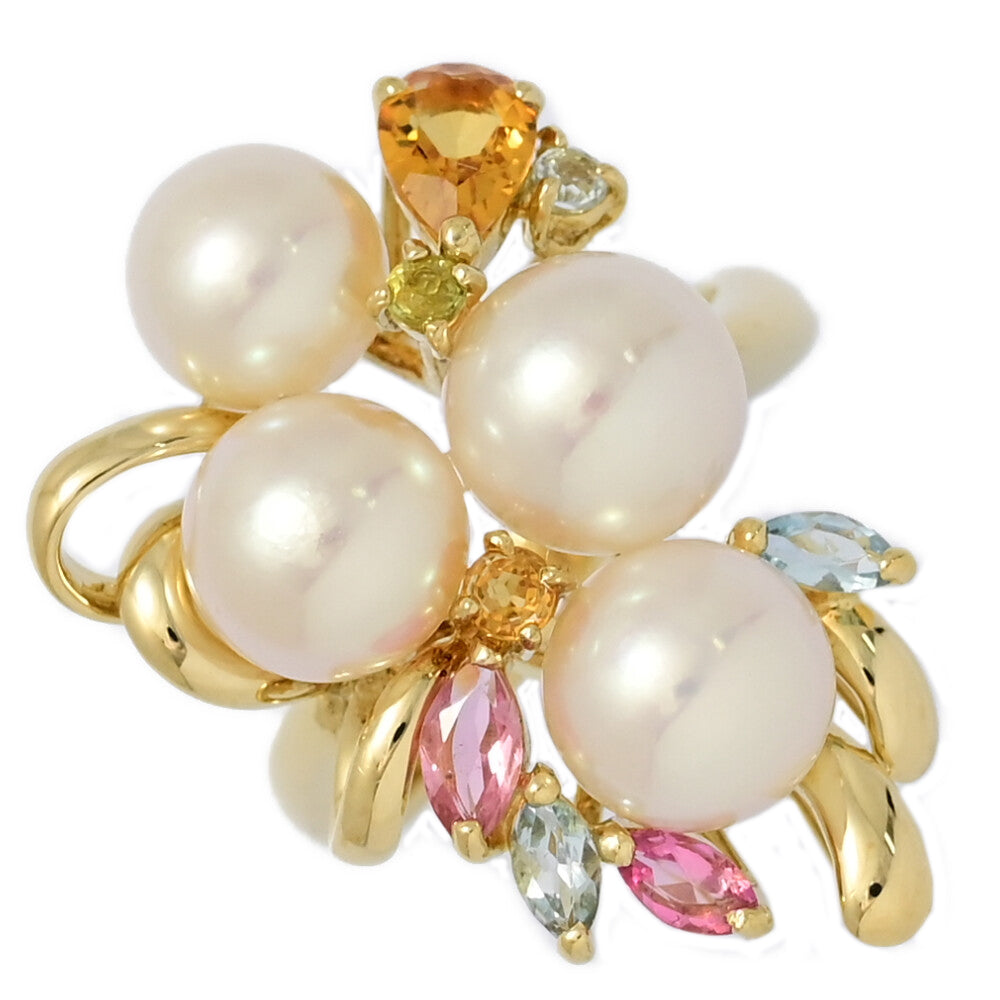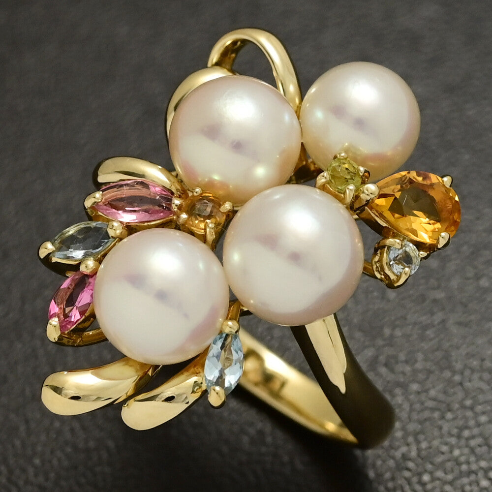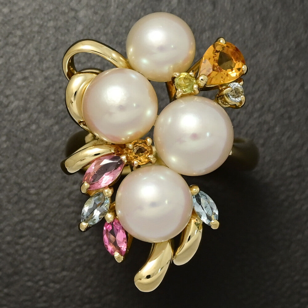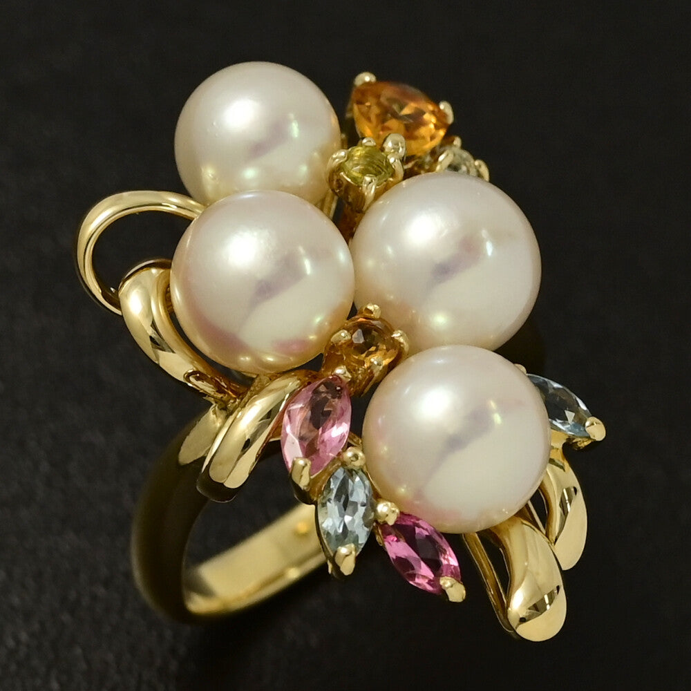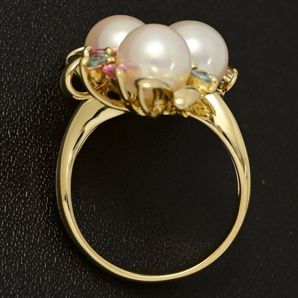 マルチストーン アコヤ真珠/パール/リング・指輪/K18YG/750-8.1g/13号/#53/イエローゴールド/プレゼント/記念日【♀】【S】【レディース】★■594624【中古】