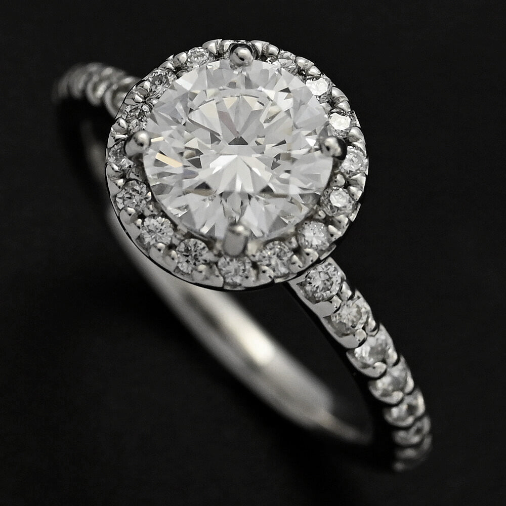 1.00ct/FD:0.3ct/ラボグロウンダイヤモンド・取り巻きセッティング リング・指輪/Pt950-4g/8号/#48/プラチナ/婚約指輪【♀】【N】【レディース】★■584228【中古】