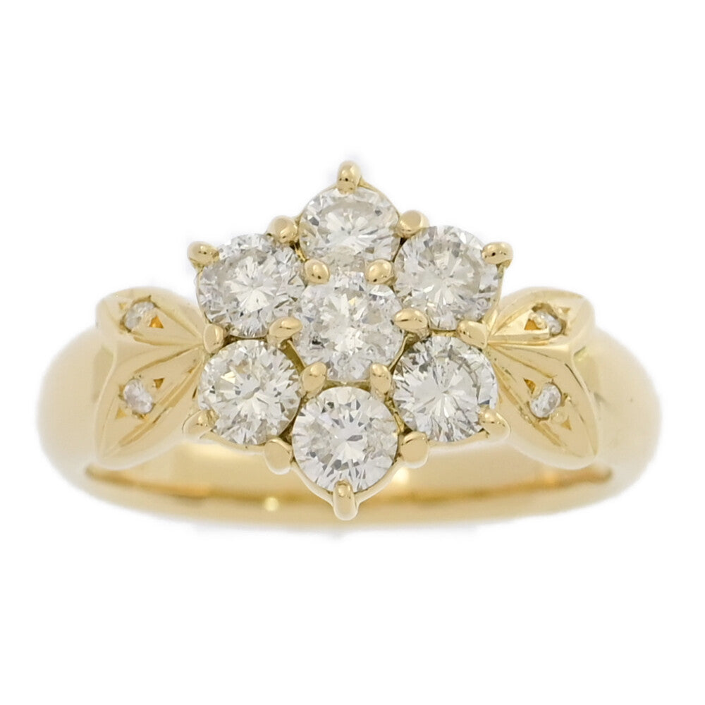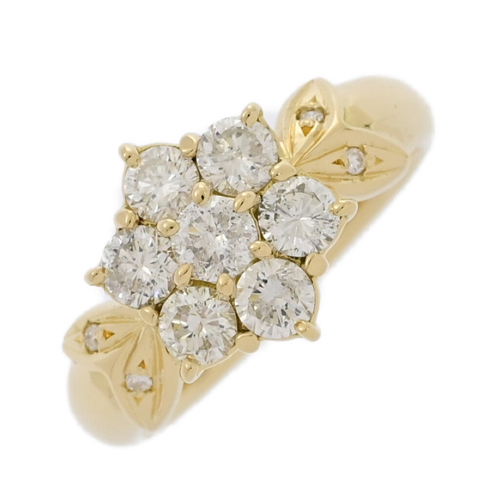 1.00ct/4月誕生石 フラワーモチーフ 7P・ダイヤモンド リング・指輪/K18YG/750-5.1g/11号/#51/イエローゴールド/プレゼント【♀】【N】【レディース】★■585660【中古】
