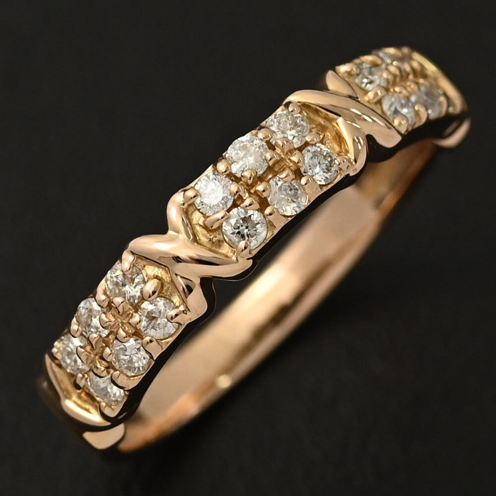 0.5ct/クロスモチーフ・ダイヤモンド リング・指輪/K18PG/750-2.7g/12.5号/#52.5/ピンクゴールド/プレゼント/記念日【♀】【S】【レディース】★■588902【中古】