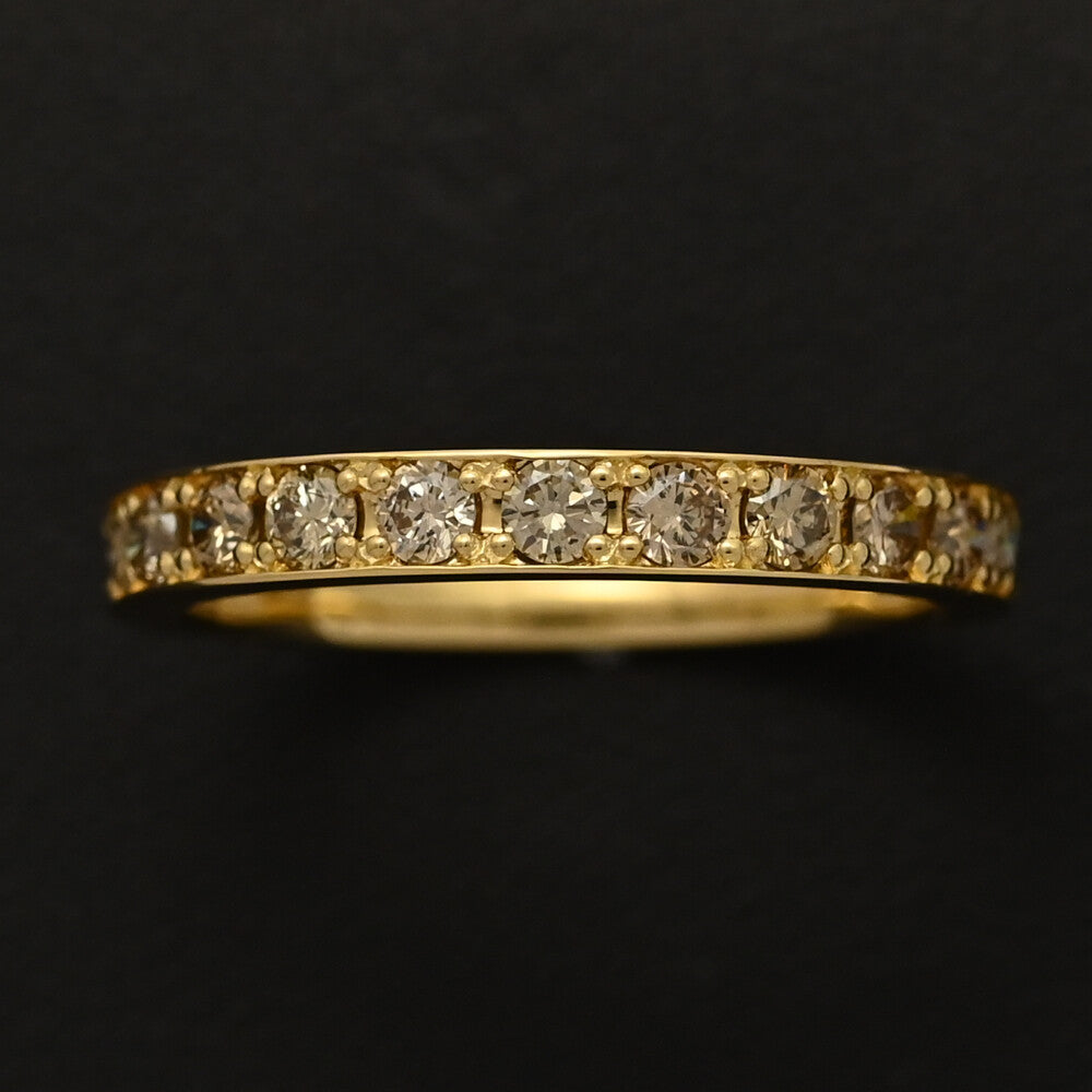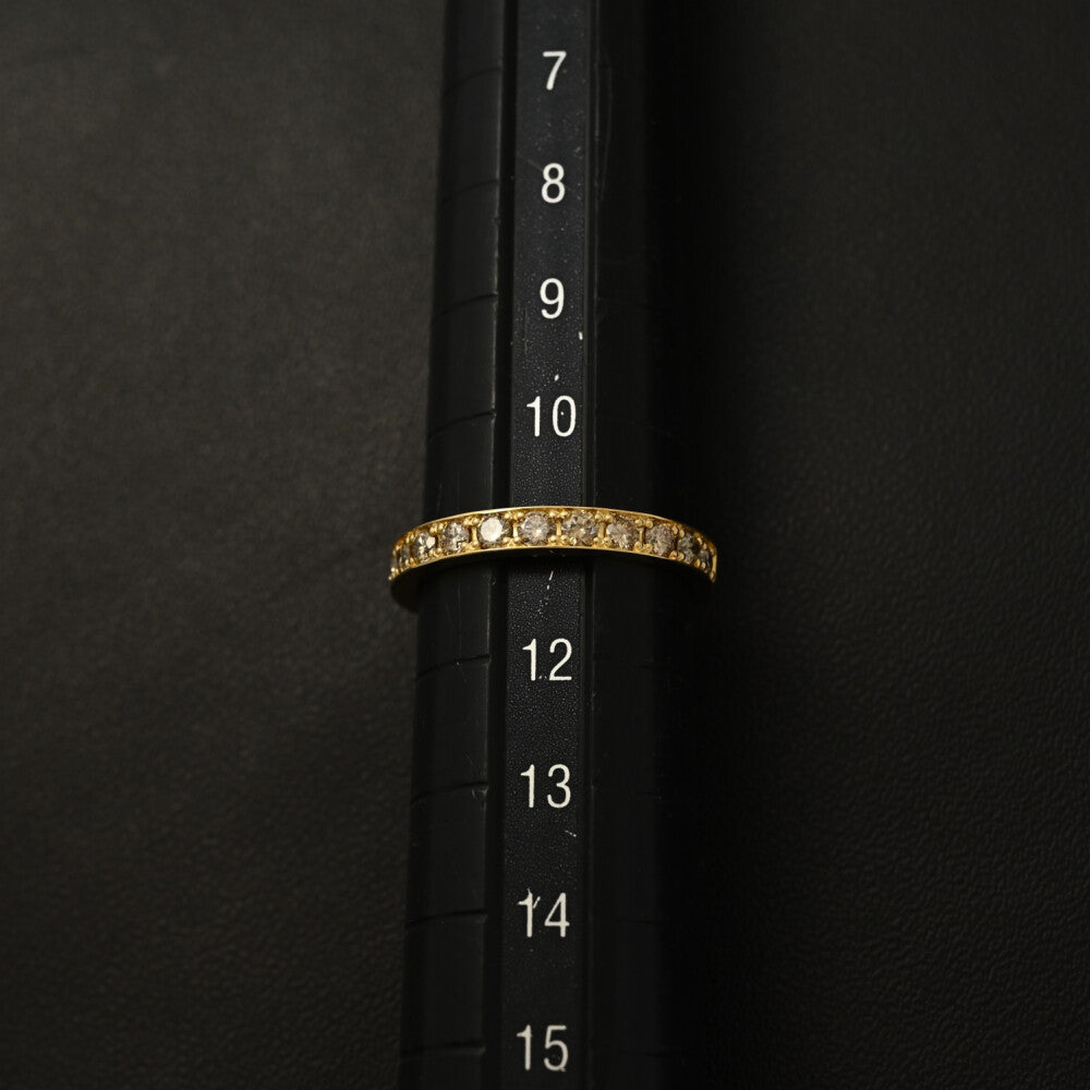 0.5ct/ハーフエタニティセッティング・ブラウン・ダイヤモンドリング・指輪/K18YG/750-1.7g/11号/#51/イエローゴールド【♀】【S】【レディース】★■589488【中古】