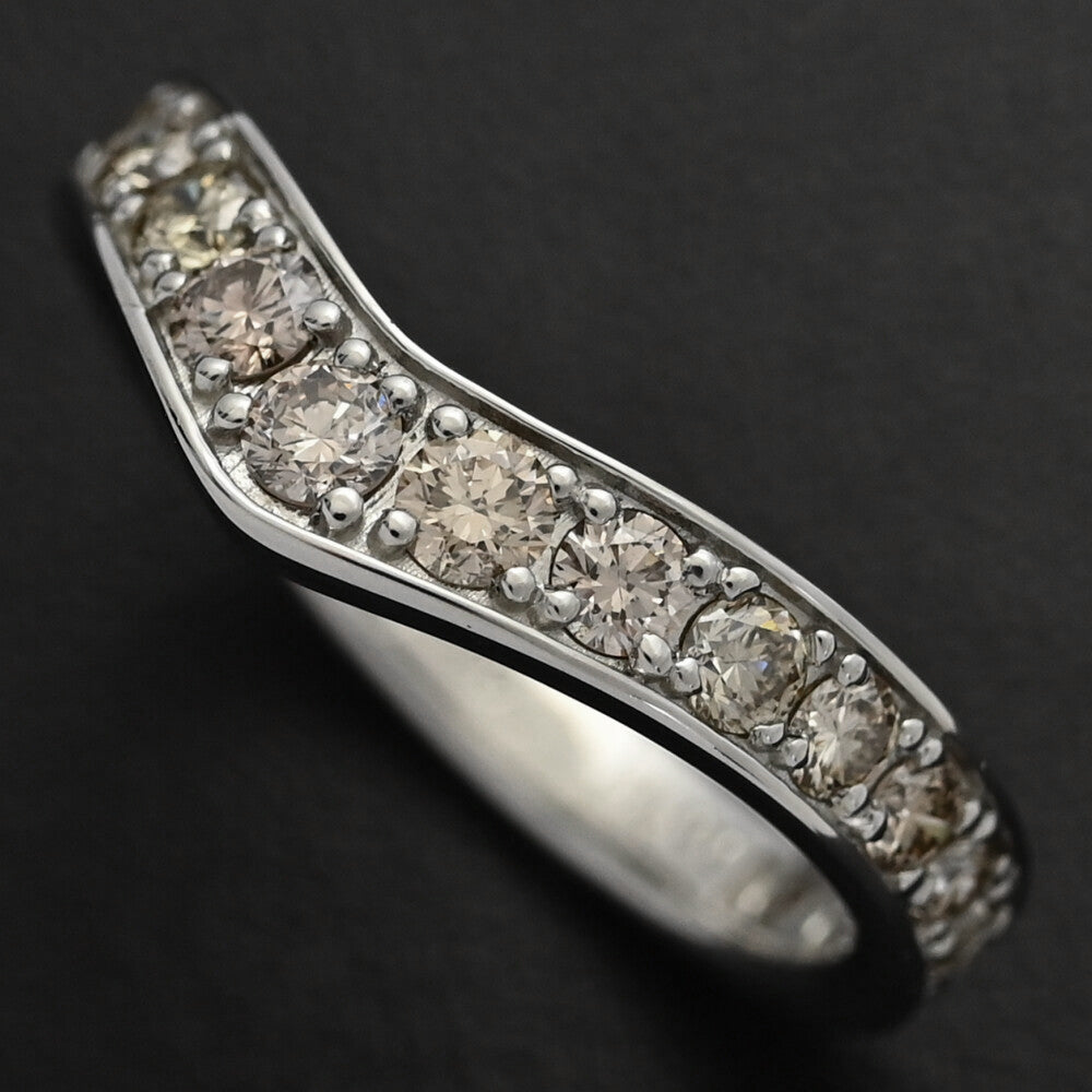 1ct/フルエタニティセッティング・V字・ブラウンダイヤ ダイヤモンドリング・指輪/Pt950-4.6g/13号/#53/プラチナ/プレゼント【♀】【S】【レディース】★■589491【中古】