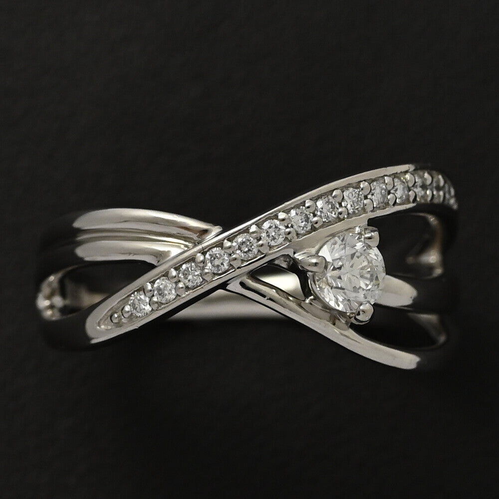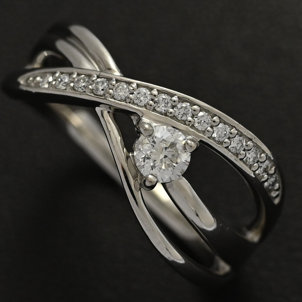 0.23ct/ウェーブデザイン ダイヤモンドリング・指輪/Pt900-5.6g/12号/#52/プラチナ/プレゼント/記念日/4月誕生石【♀】【S】【レディース】★■590815【中古】