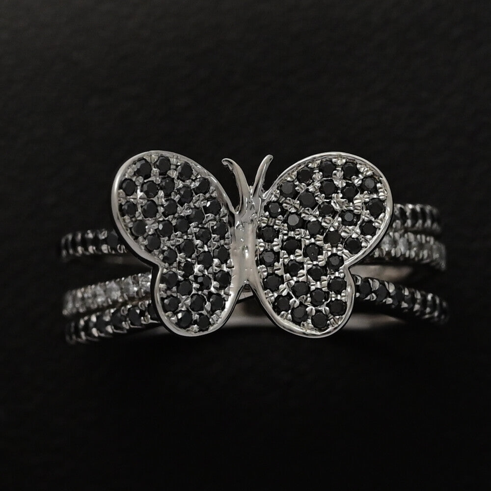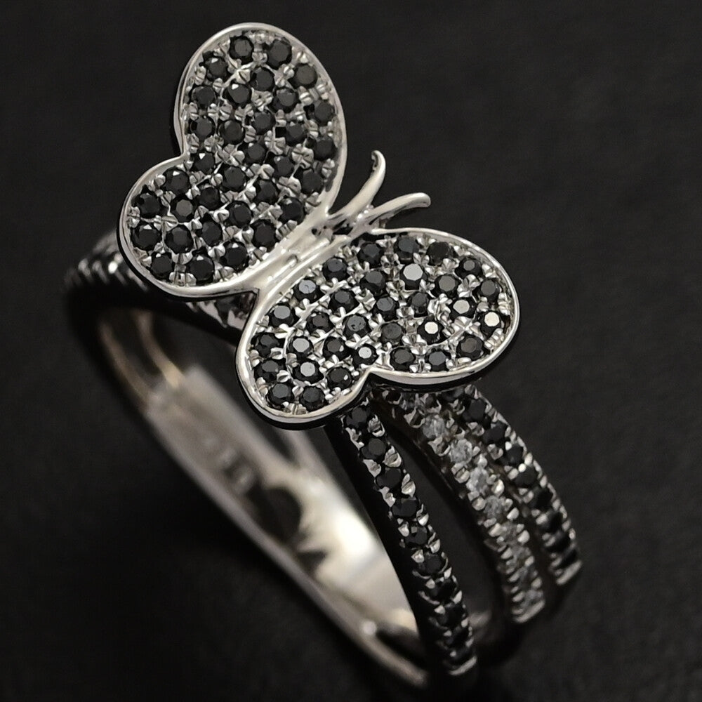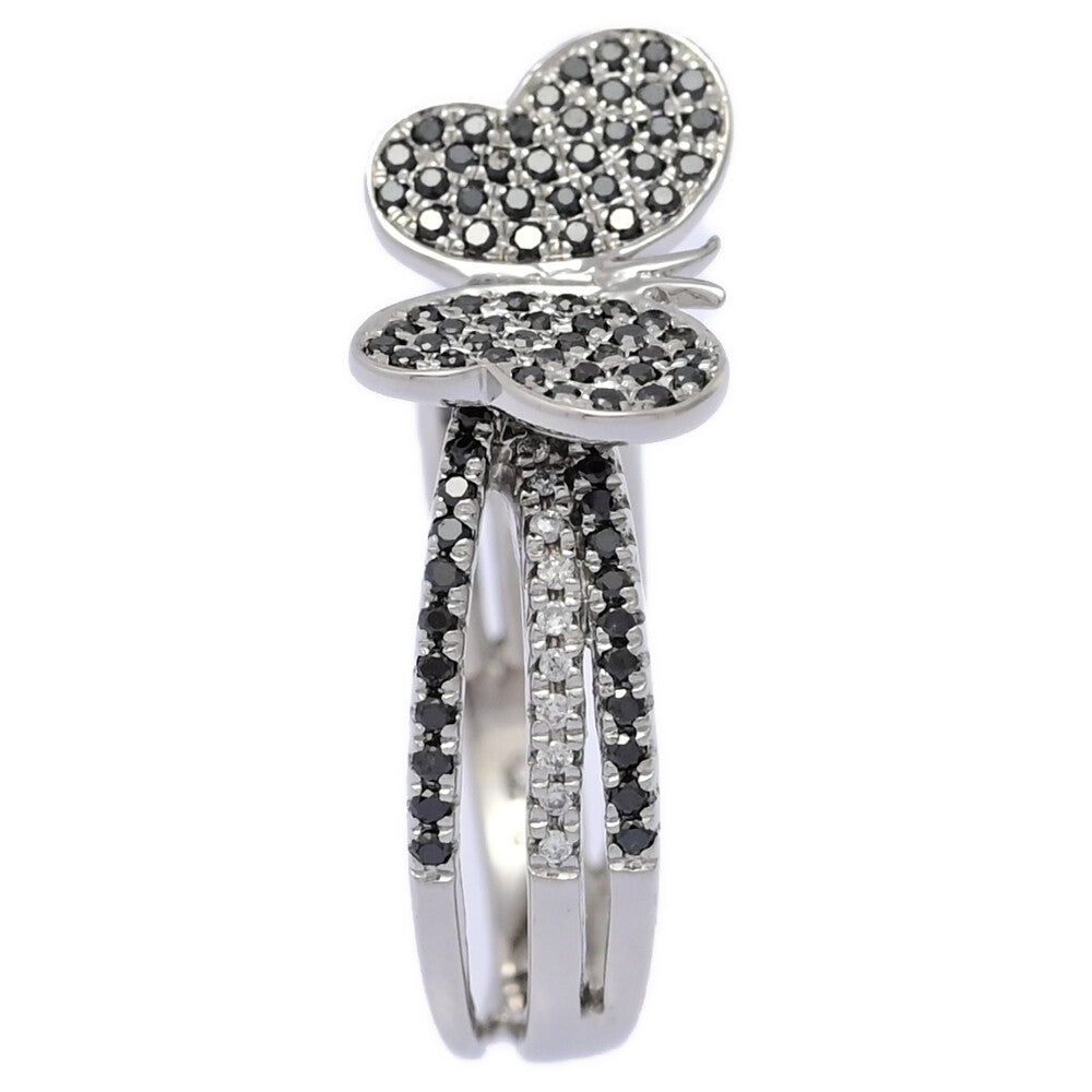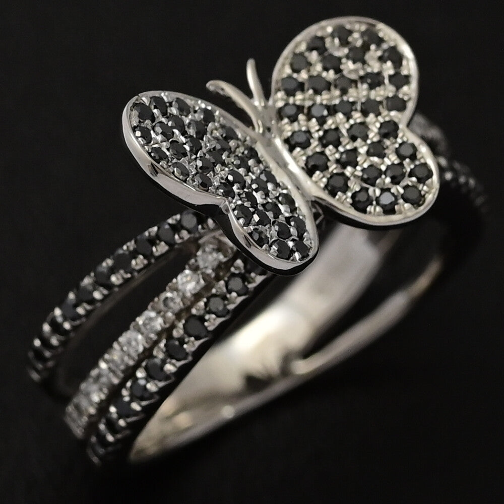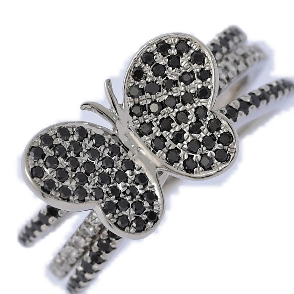 0.54ct/バタフライモチーフ ブラックダイヤモンド ダイヤモンド リング・指輪/K18WG/750-5.4g/10号/#50/ホワイトゴールド【♀】【S】【レディース】★■591532【中古】