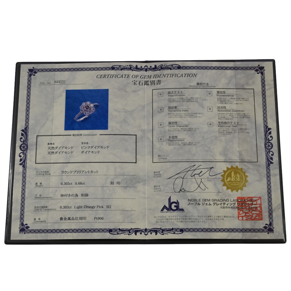 0.303ct/FD:0.68ct/ハーフエタニティセッティング・取り巻き 1P・ピンクダイヤモンド・リング・指輪/Pt900-3.2g/12号/#52/【♀】【N】【レディース】★■591597【中古】