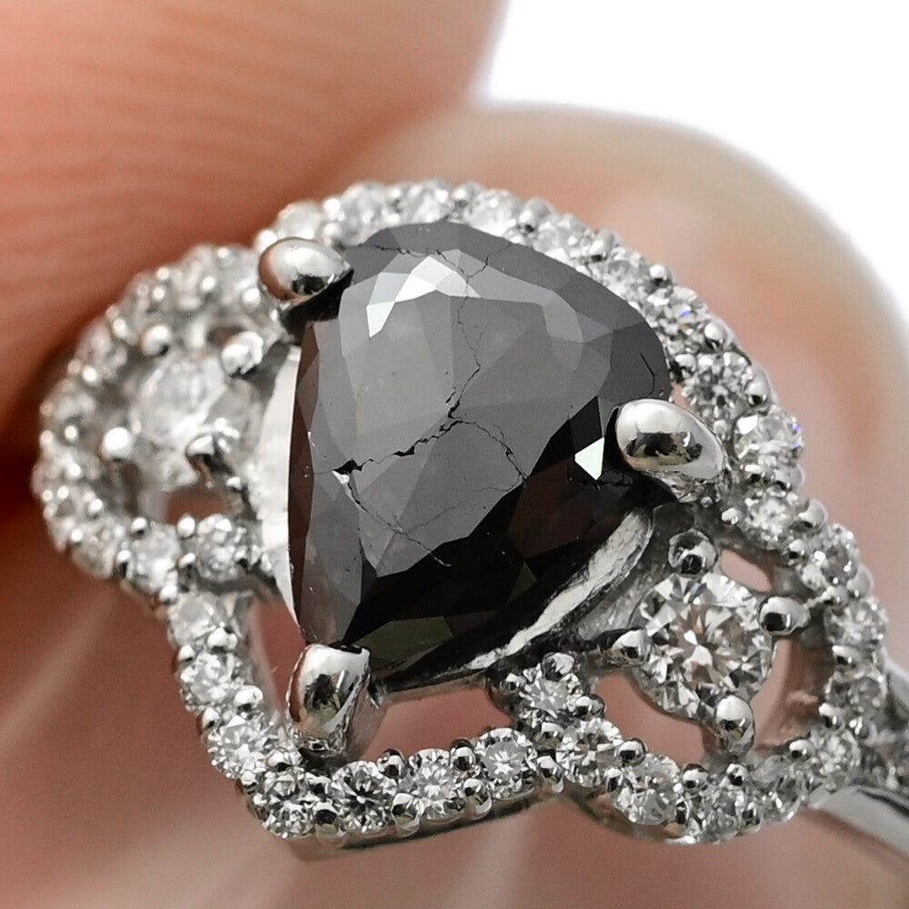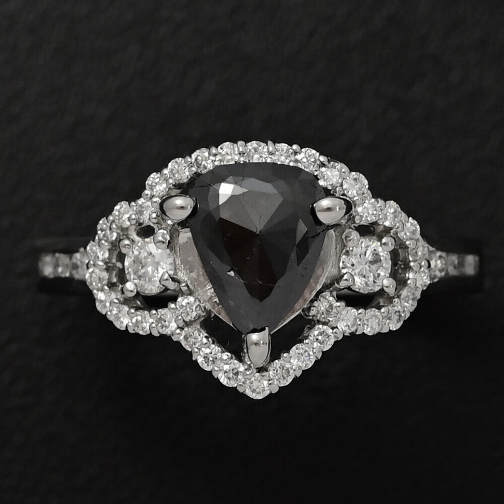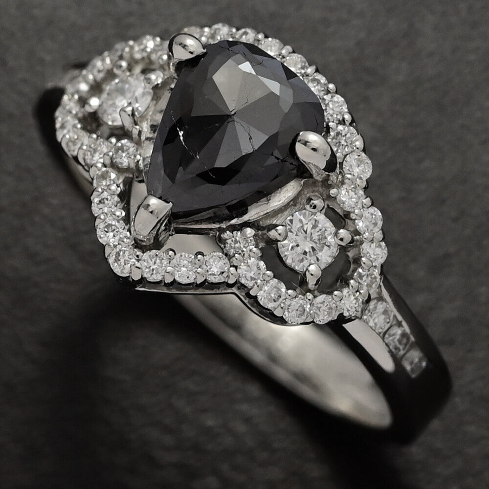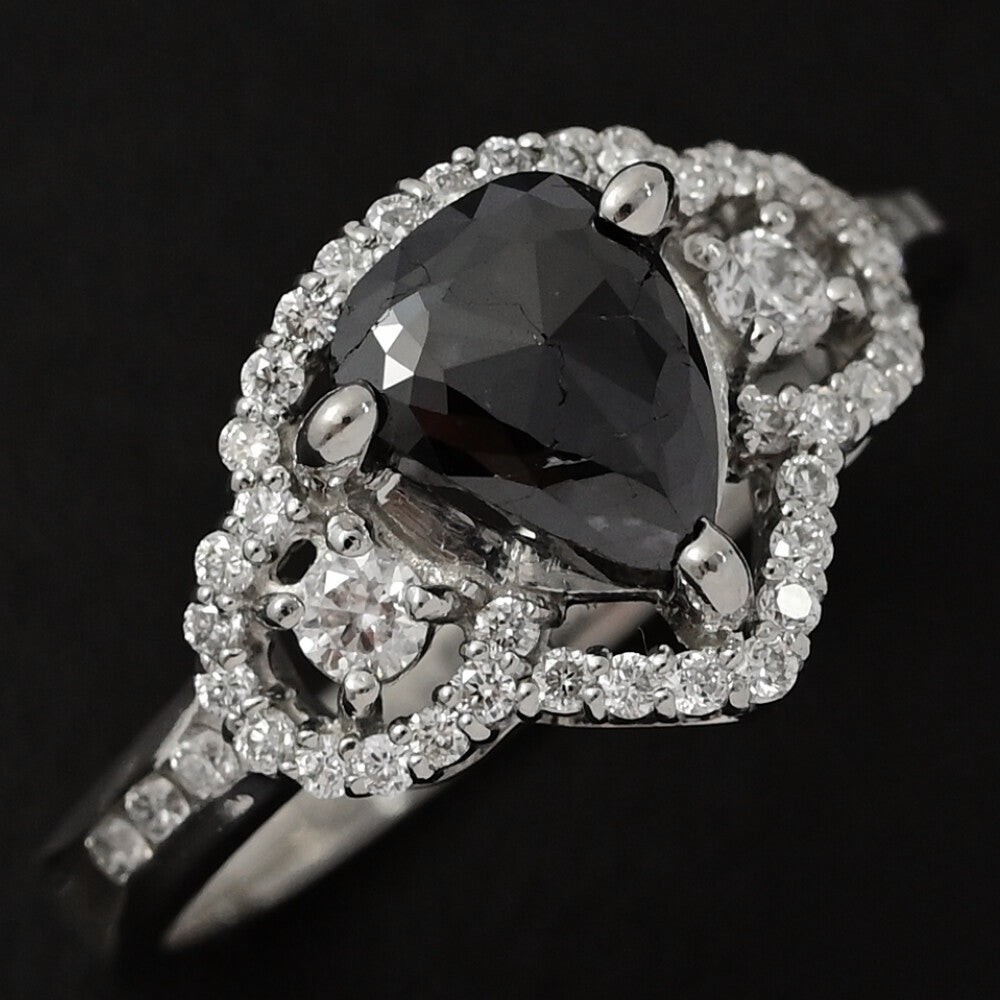 0.76ct/FD:0.32ct/ペアシェイプ ブラックダイヤモンド・ダイヤモンドリング・指輪/Pt900-4g/11号/#51/プラチナ/プレゼント【♀】【S】【レディース】★■591711【中古】