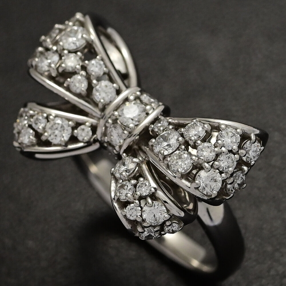 0.78ct/Ponte Vecchio ポンテヴェキオ リボン・ダイヤモンドリング・指輪/K18WG/750-8.6g/11号/#51/ホワイトゴールド/翌日配送可【♀】【N】【レディース】★■592159【中古】