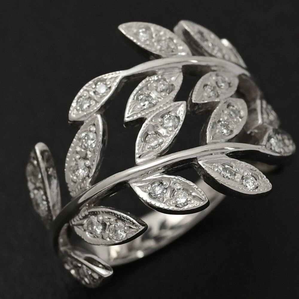 0.37ct/リーフモチーフ・ダイヤモンドリング・指輪/K18WG/750-5.8g/13号/#53/ホワイトゴールド 翌日配送可【♀】【N】【レディース】★■593551【中古】