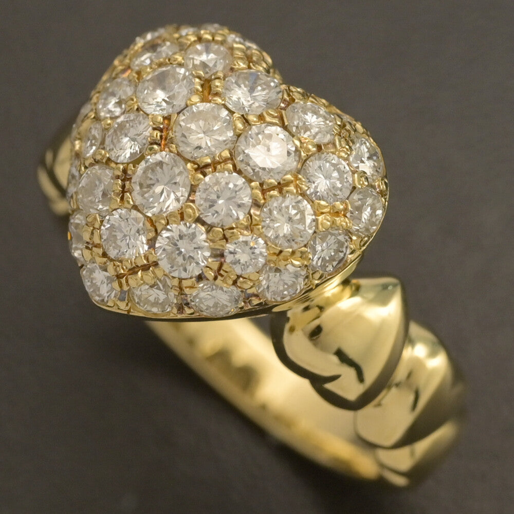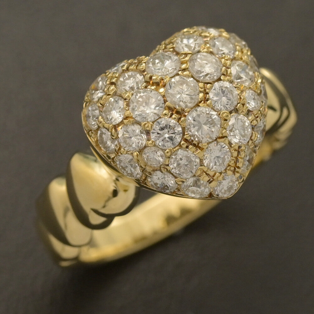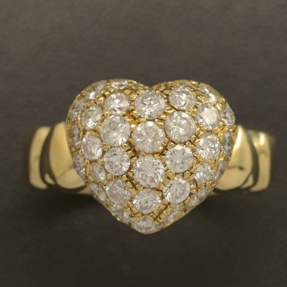 1.09ct/ハートモチーフ パヴェ ダイヤモンド リング・指輪/K18YG/750-6.0g/13号/#53/イエローゴールド/プレゼント/記念日【♀】【S】【レディース】★■594988【中古】