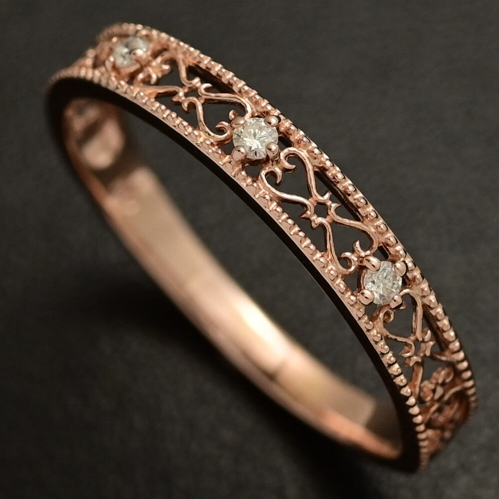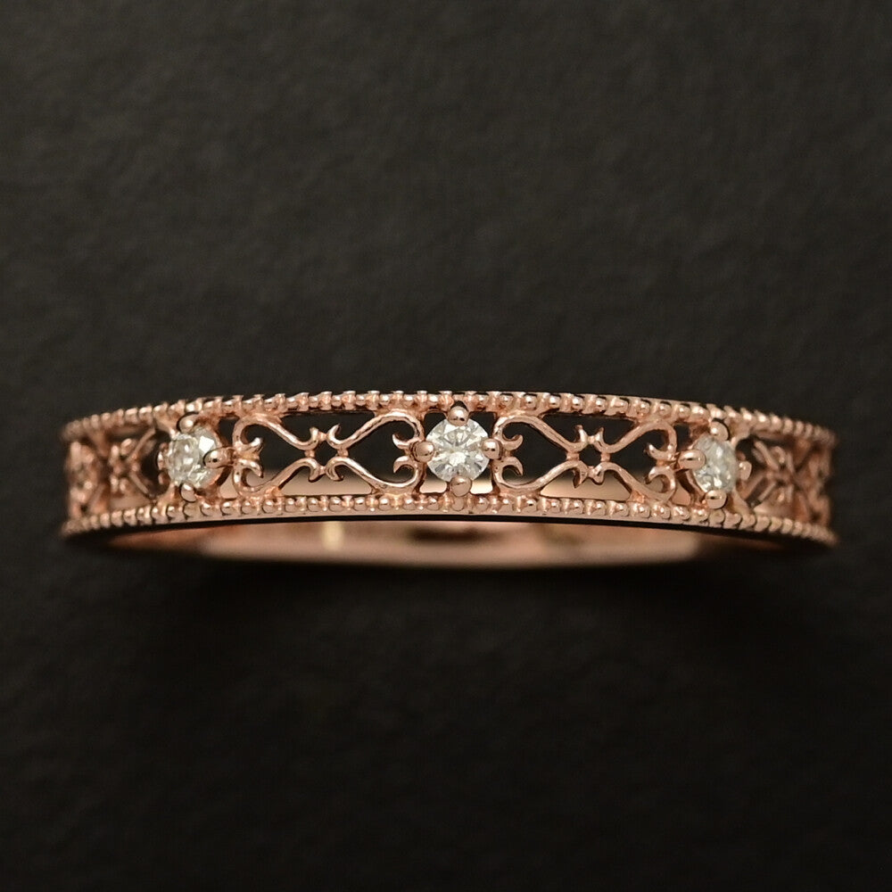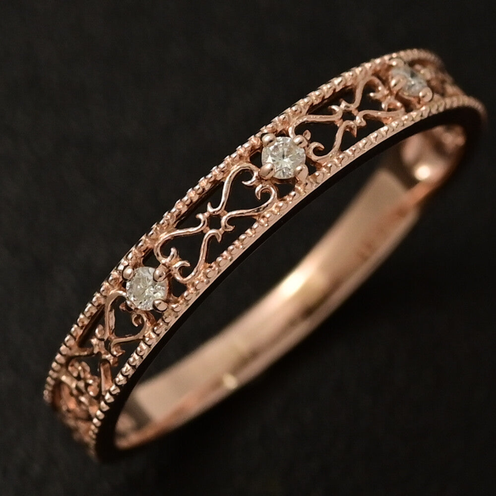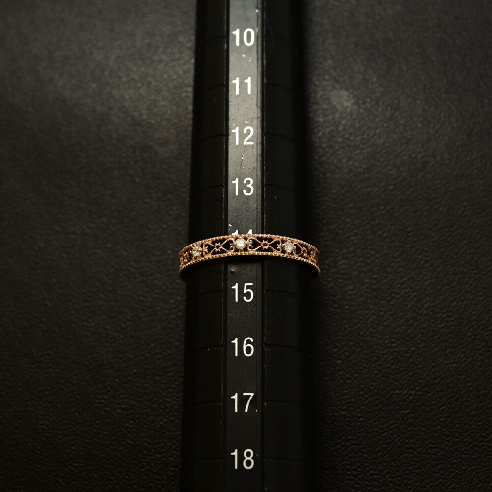 透かしデザイン 3P ダイヤモンド リング・指輪/K10PG/416-1.2g/14号/#54/ピンクゴールド/プレゼント/記念日【♀】【N】【レディース】★■595127【中古】