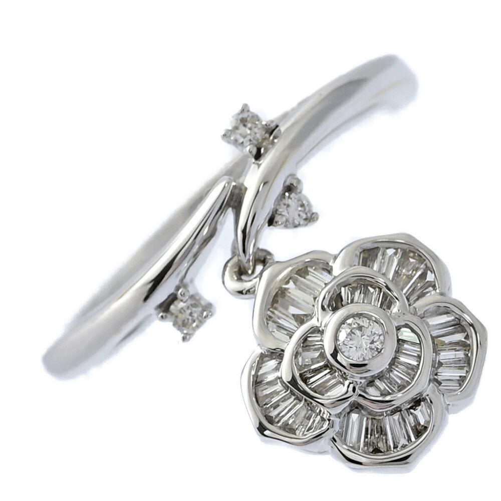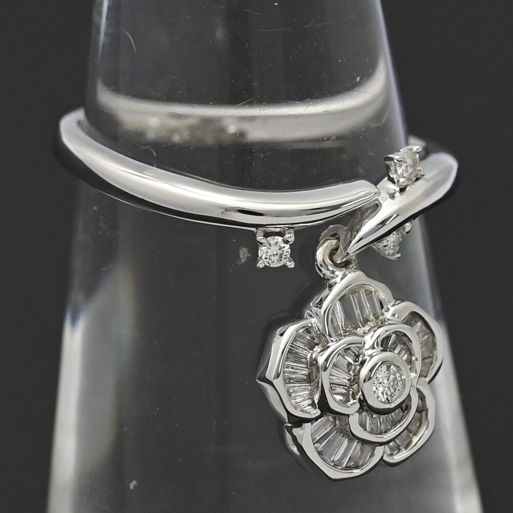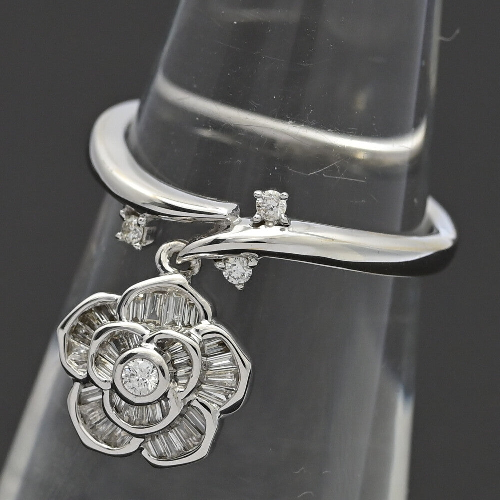 0.2ct/ダイヤモンド ローズ フラワーモチーフ・リング・指輪/K18WG/750-3.9g/13号/#53/ホワイトゴールド/スウィング/プレゼント【♀】【S】【レディース】★■598038【中古】