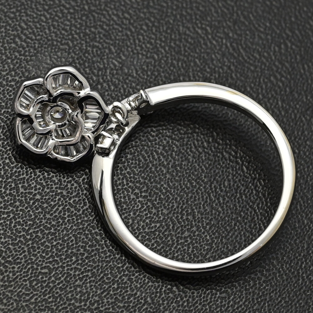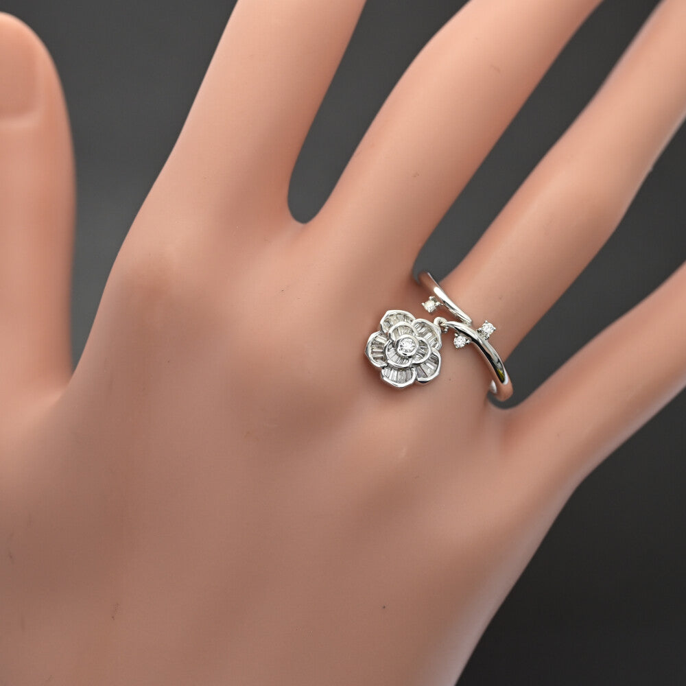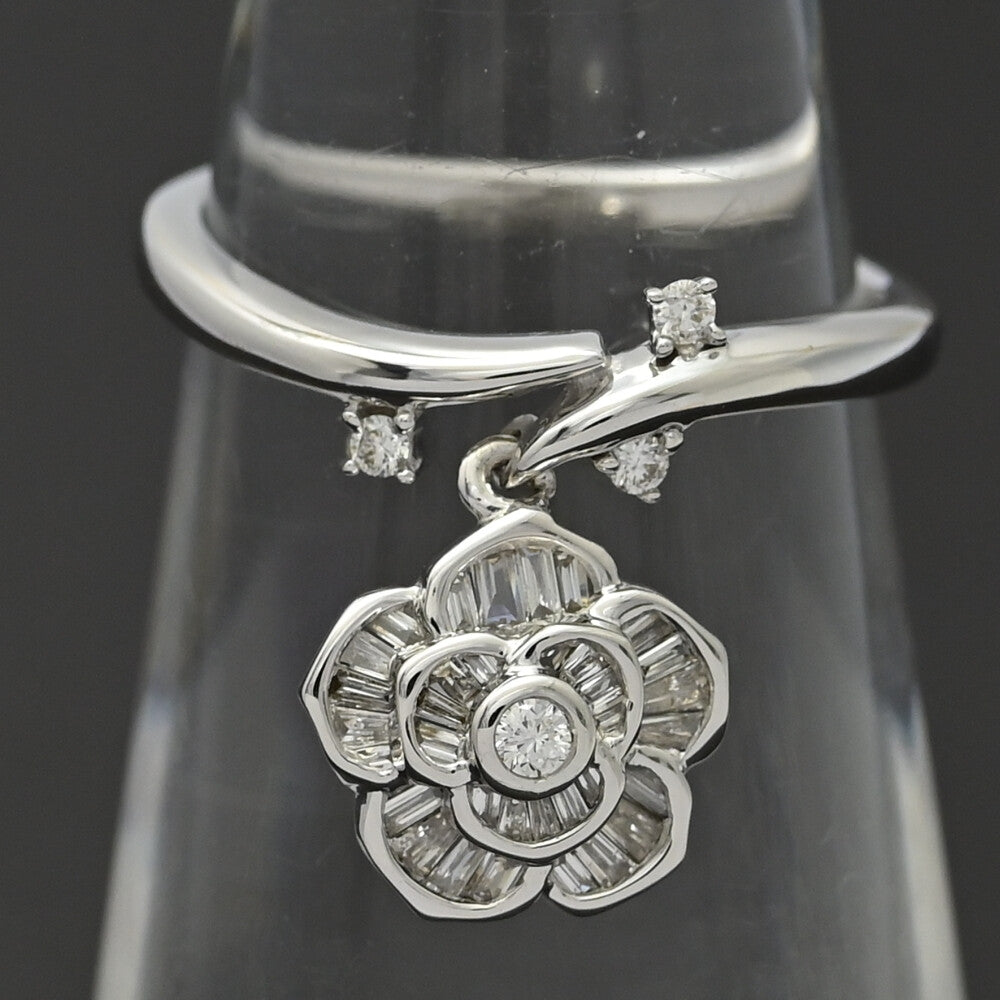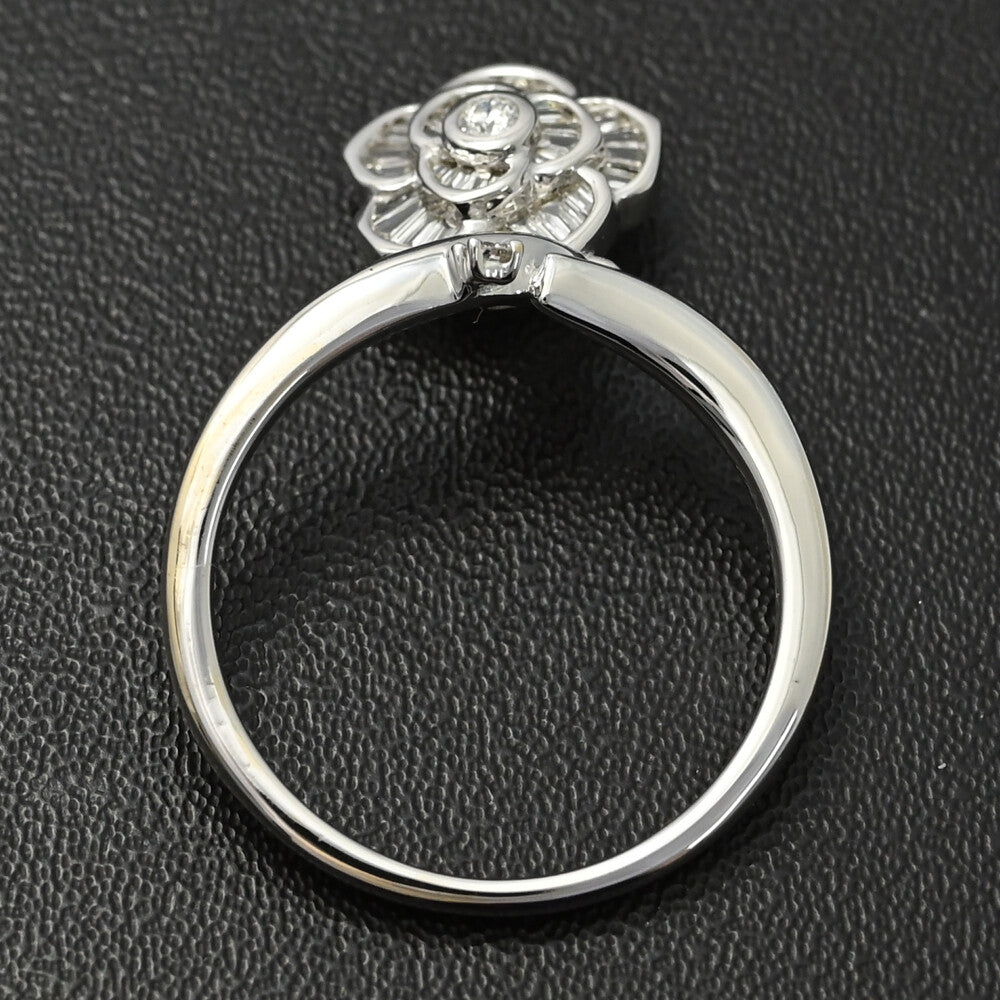 0.2ct/ダイヤモンド ローズ フラワーモチーフ・リング・指輪/K18WG/750-3.9g/13号/#53/ホワイトゴールド/スウィング/プレゼント【♀】【S】【レディース】★■598038【中古】