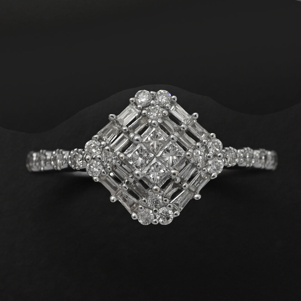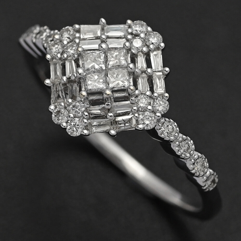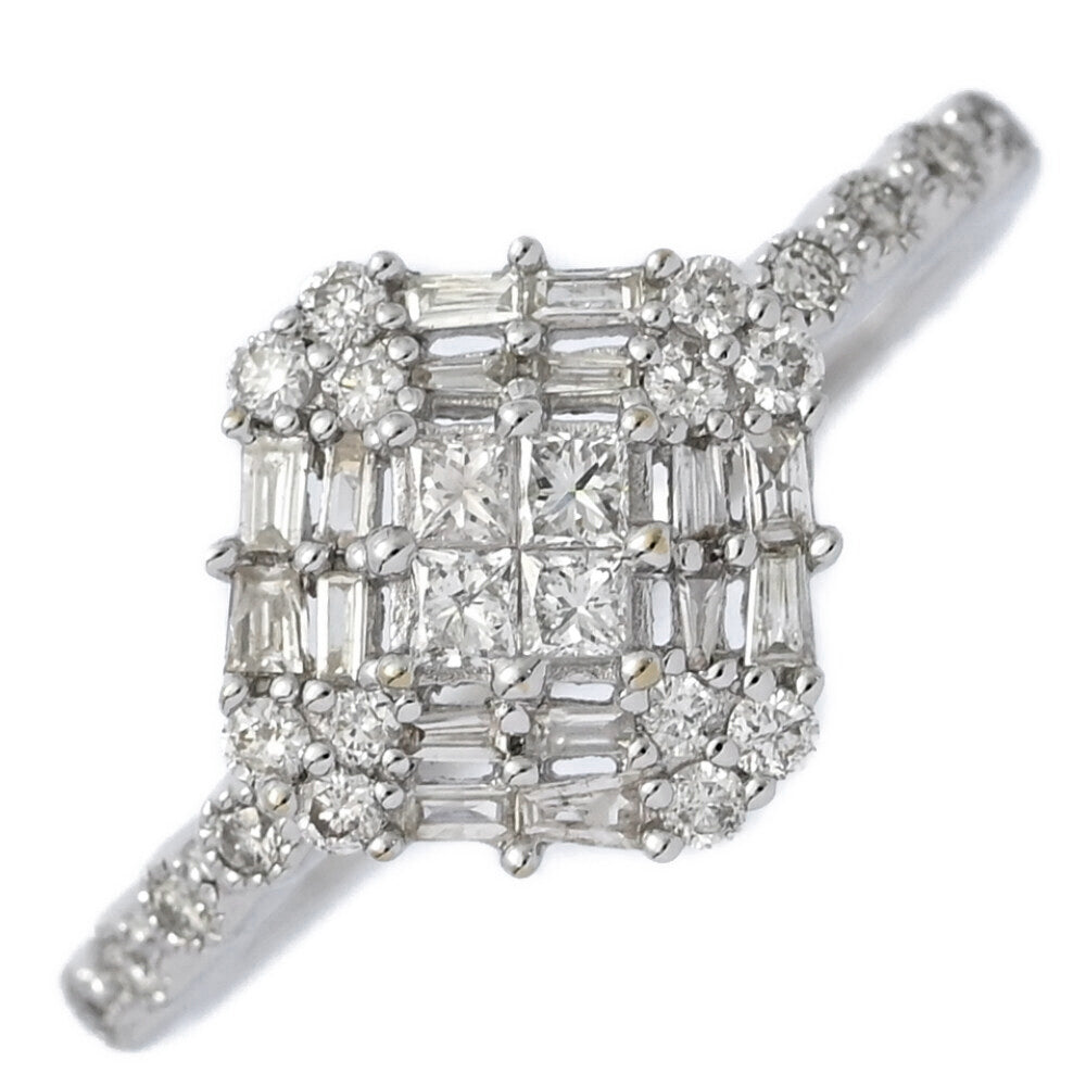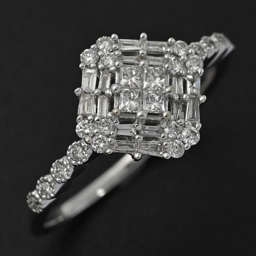 0.5ct/ダイヤモンド ひし形モチーフ リング・指輪/K18WG/750-3.0g/21号/#61/ホワイトゴールド/プレゼント/記念日/4月誕生石【♀】【S】【レディース】★■598344【中古】