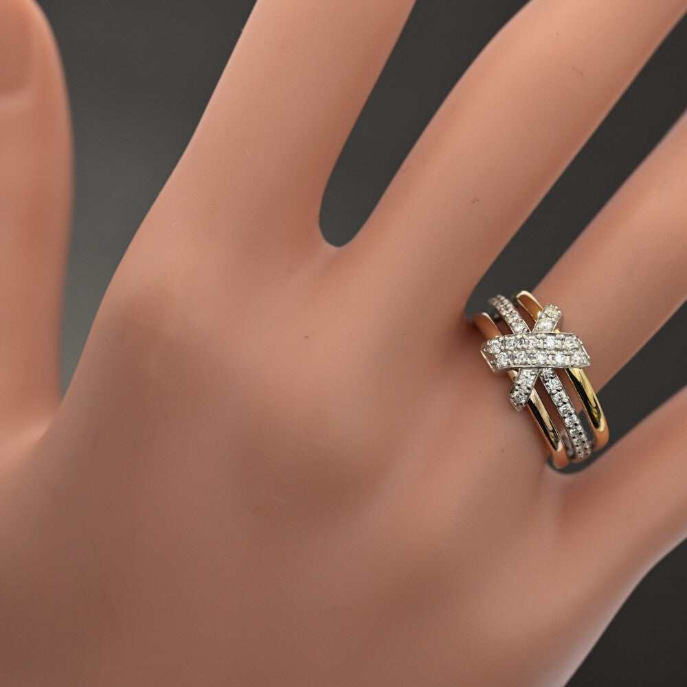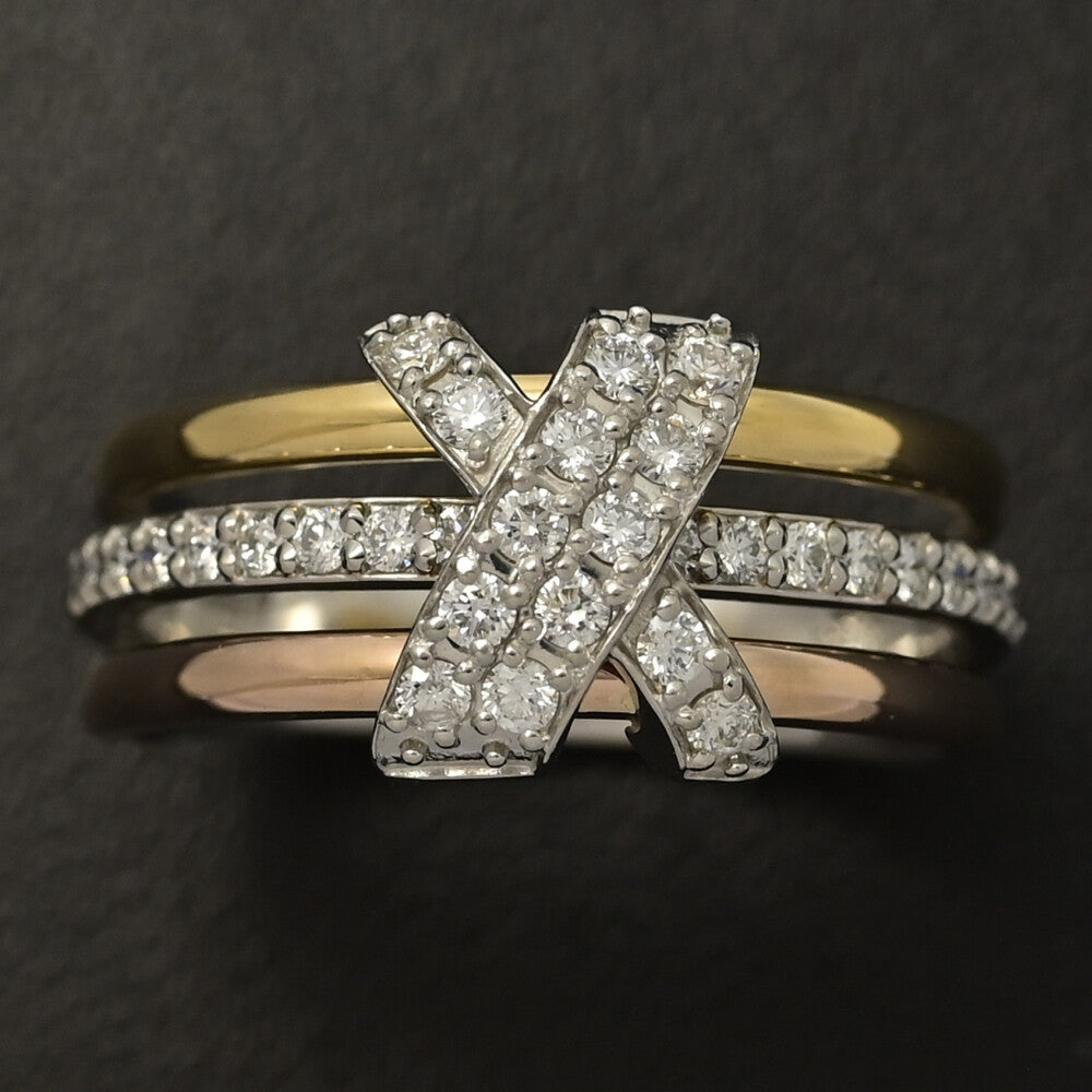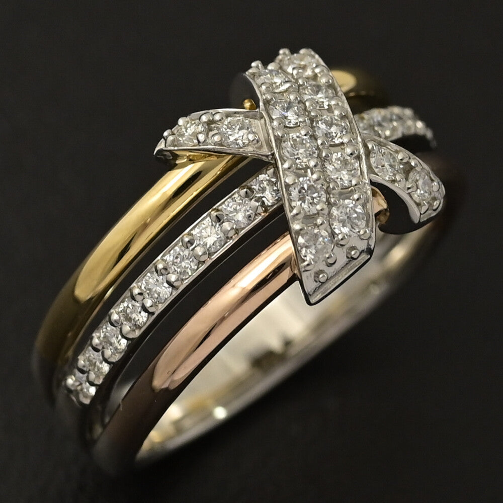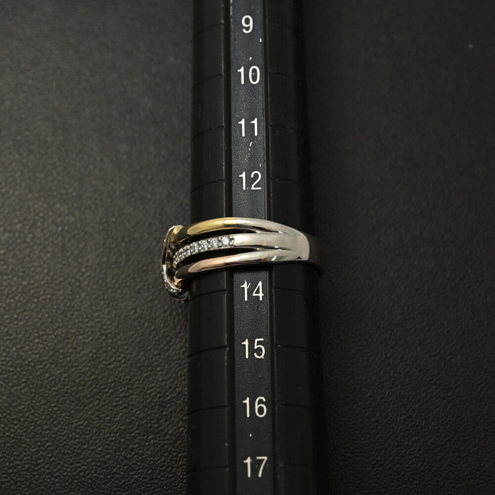 0.380ct/クロスモチーフ・3ライン ダイヤモンド リング・指輪/K18/750×Pt900コンビ-Pメイン-7.6g/13号/#53/プレゼント/記念日【S】【メンズ・レディース】★■598450【中古】