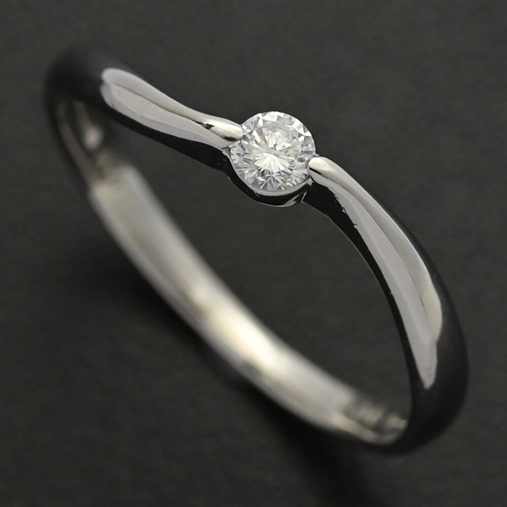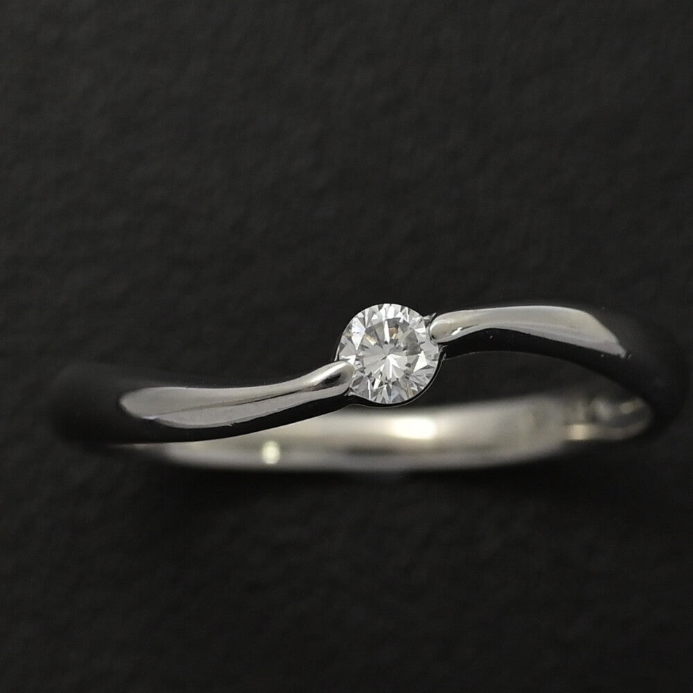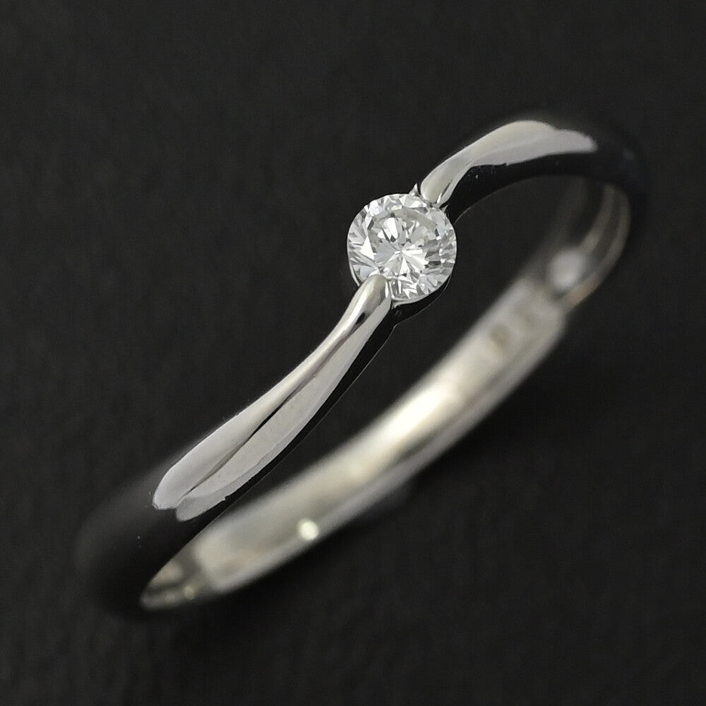 0.08ct/ダイヤモンド ウェーブモチーフ 1P・リング・指輪/Pt900-1.9g/11号/#51/プラチナ/プレゼント/記念日/4月誕生石【♀】【S】【レディース】★■598578【中古】