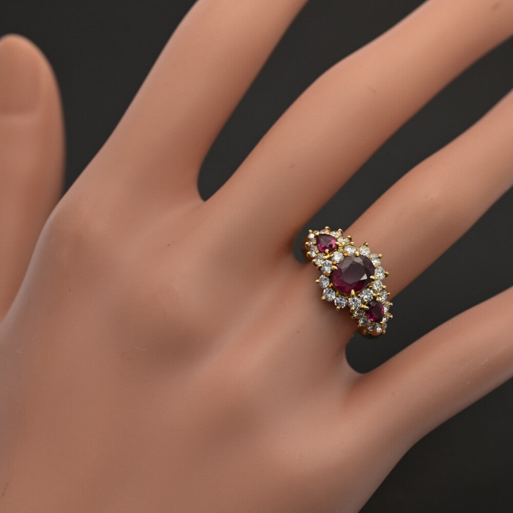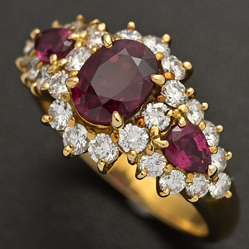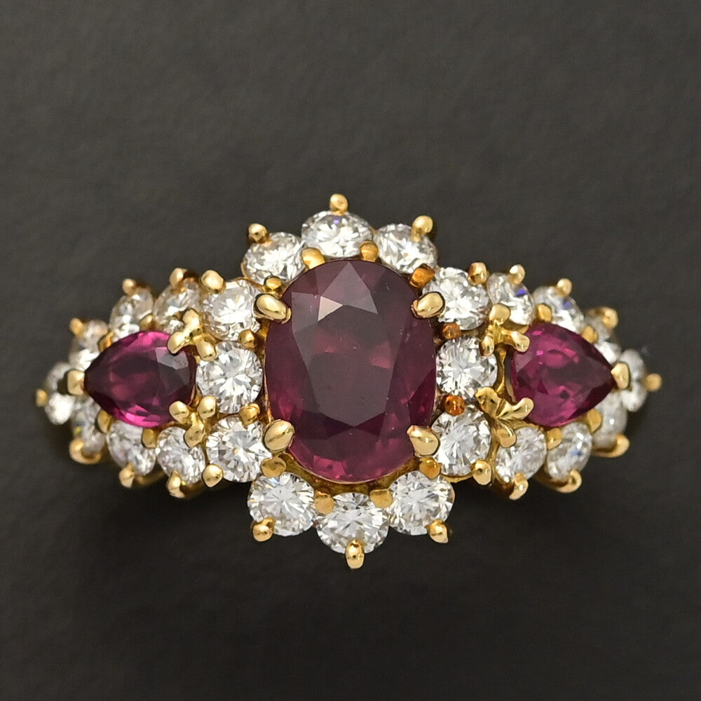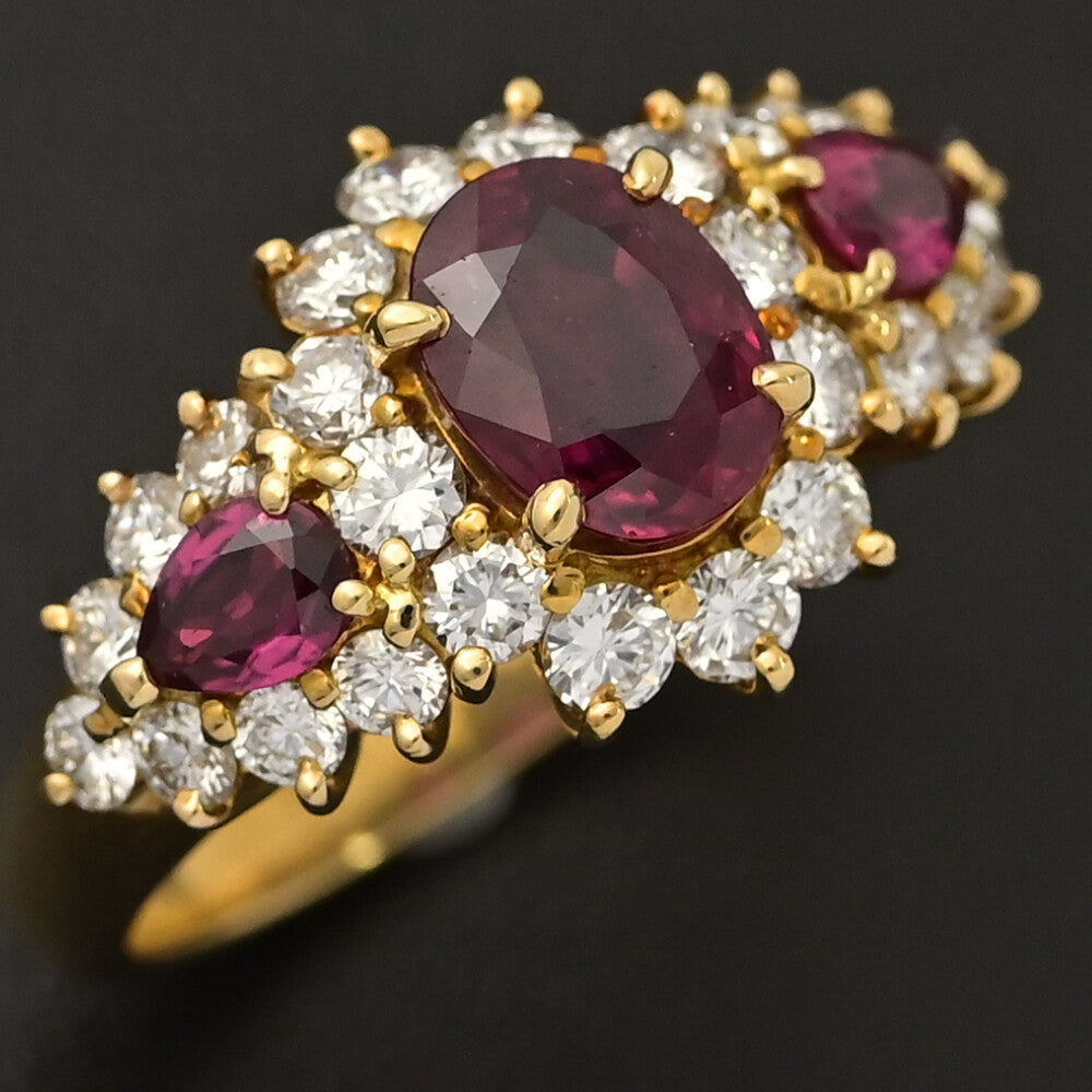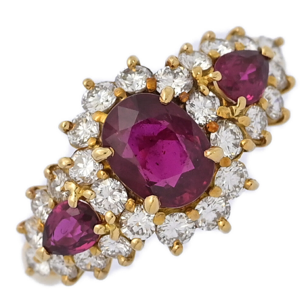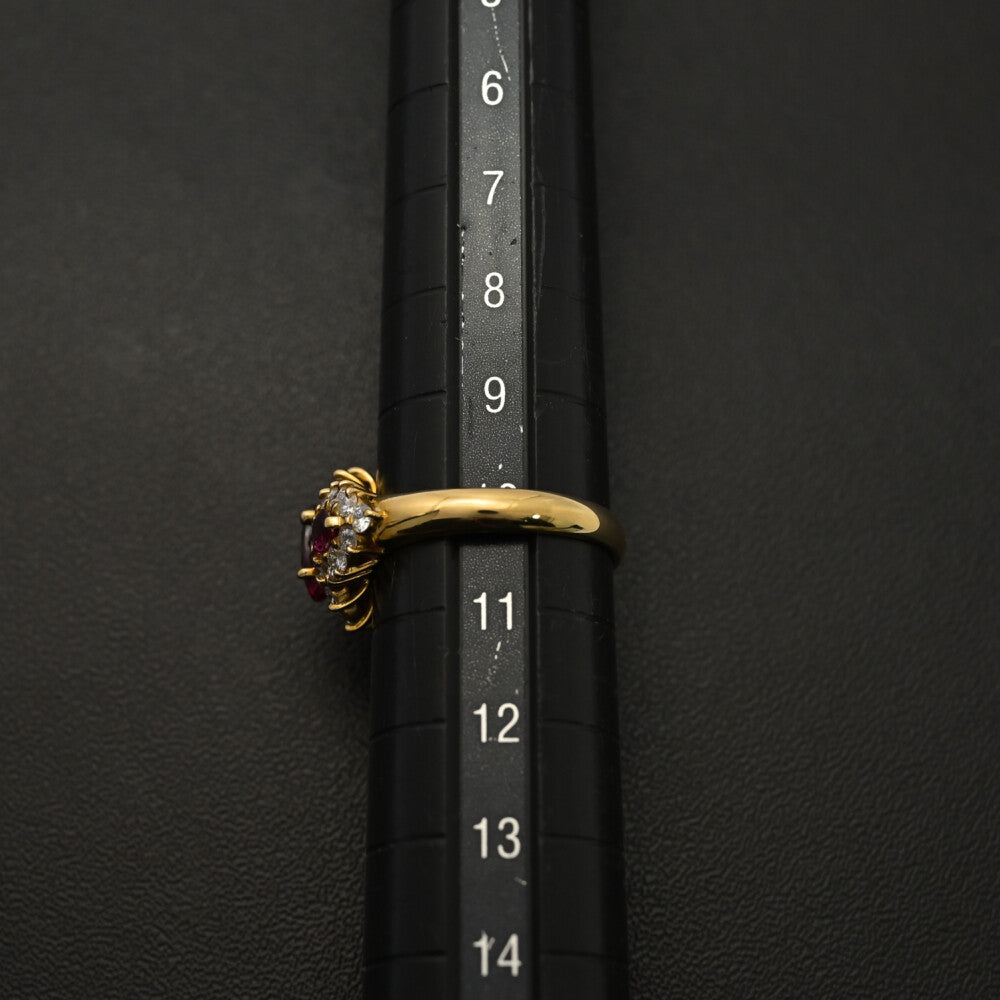 RU1.09ct/FD:0.36ct/ルビー・ダイヤモンド フラワーモチーフ リング・指輪/K18YG/750-4.7g/10号/#50/イエローゴールド【♀】【A】【レディース】★■595804【中古】