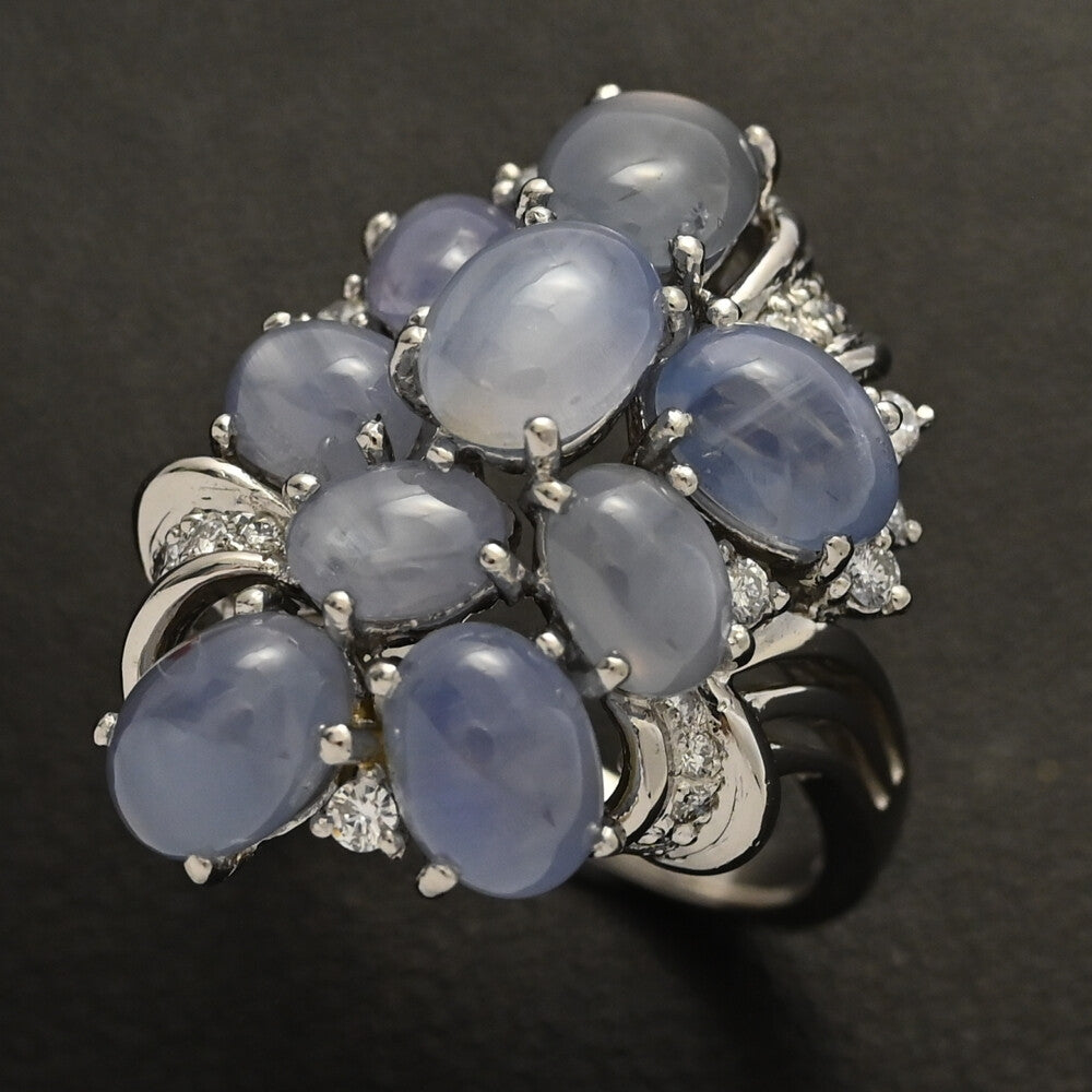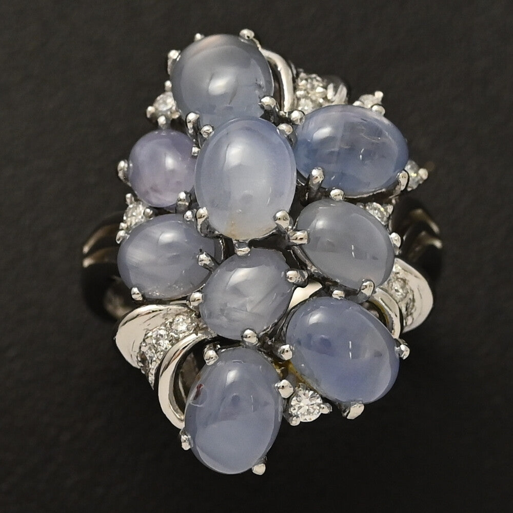 SA10.36ct/FD:0.24ct/カボションカット サファイア ダイヤモンド リング・指輪/Pt900-11.5g/13.5号/#53.5/プラチナ/プレゼント【♀】【N】【レディース】★■589807【中古】