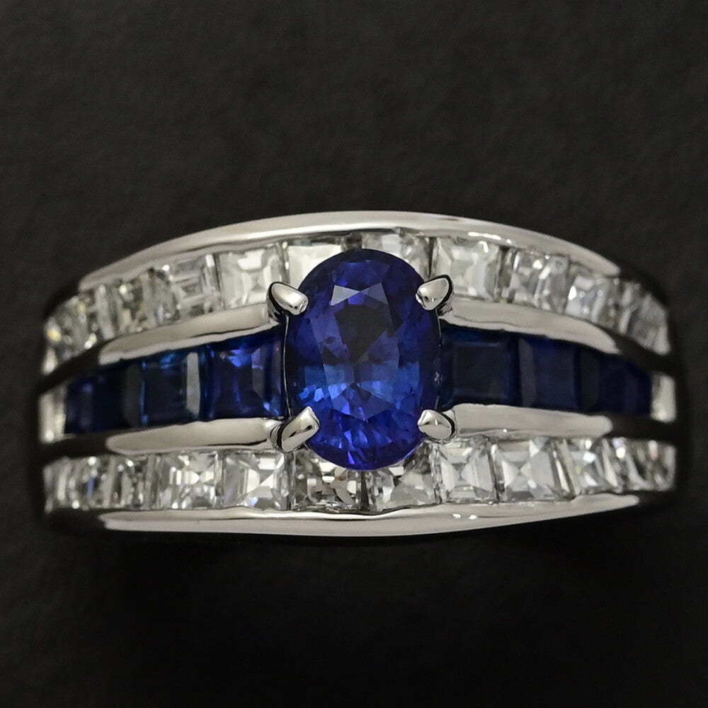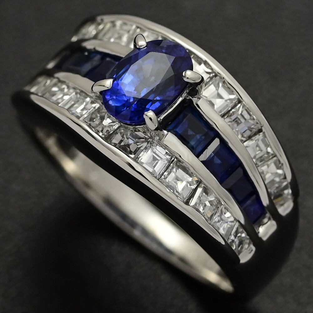 SA0.96ct/0.85ct/D1.15ct/サファイア・ダイヤモンドリング・指輪/Pt900-9.1g/12号/#52・プラチナ/プレゼント/記念日【♀】【S】【レディース】★■592508【中古】