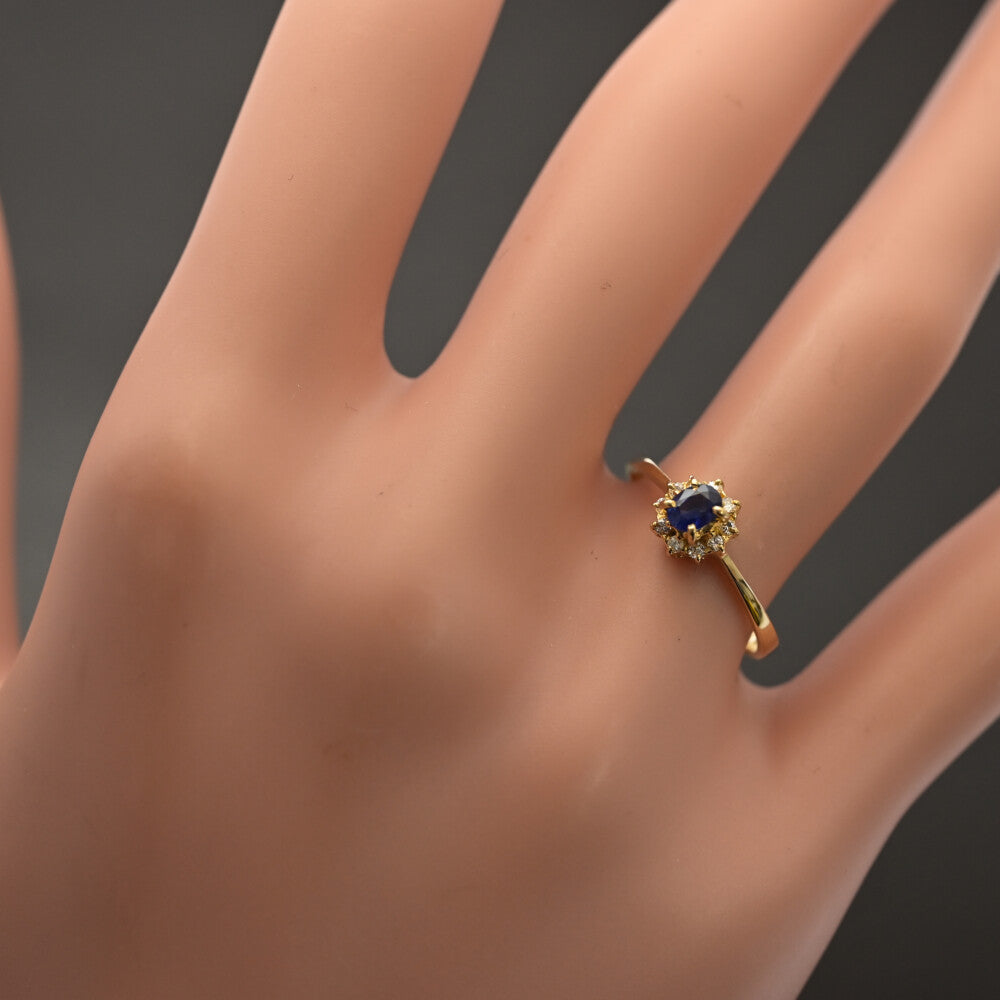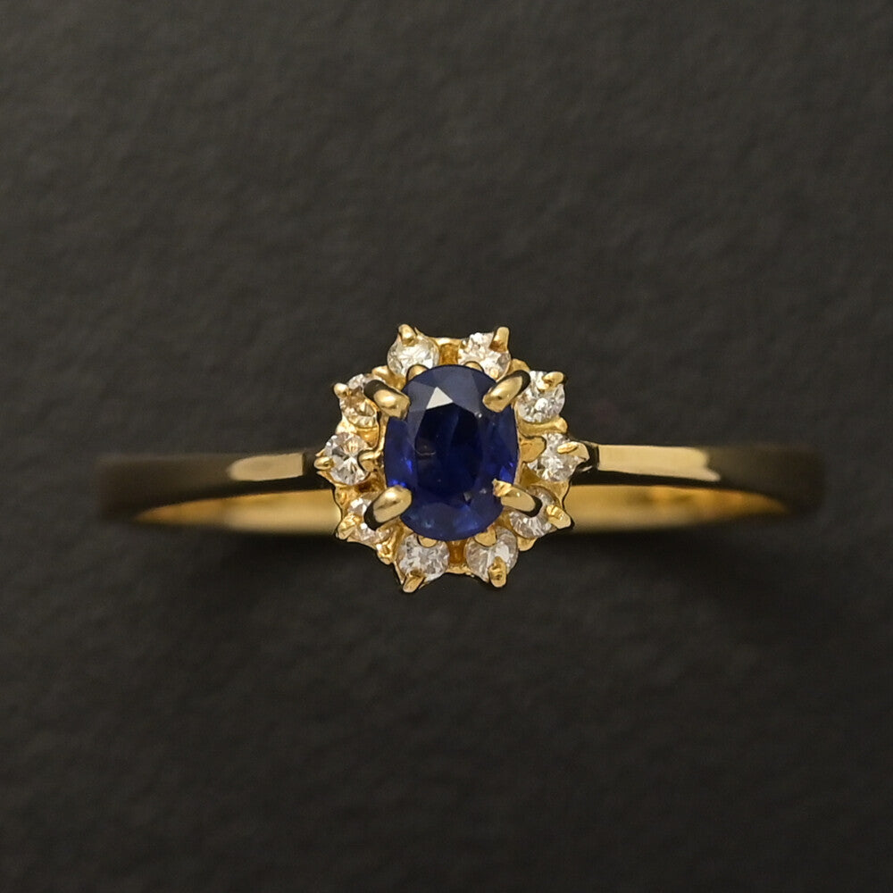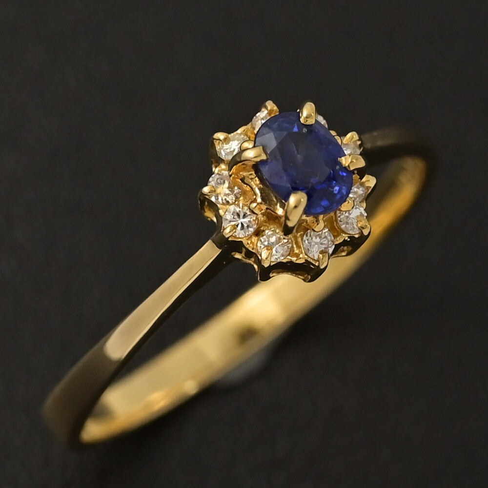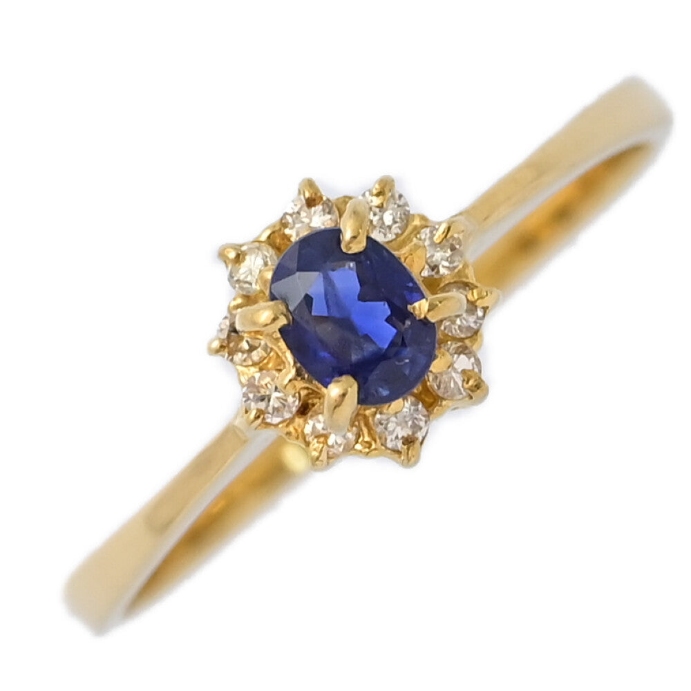 D0.08ct/ブルーサファイア・ダイヤモンドリング・指輪/K18YG/750-1.6g/12.5号/#52.5/イエローゴールド/プレゼント/記念日【♀】【S】【レディース】★■598255【中古】