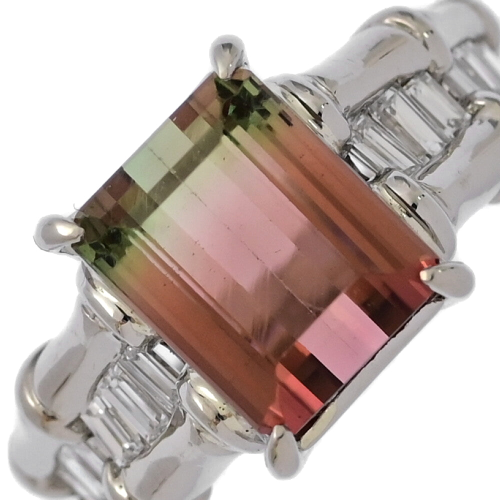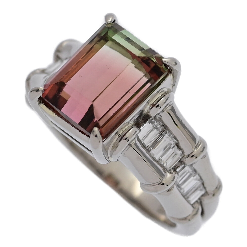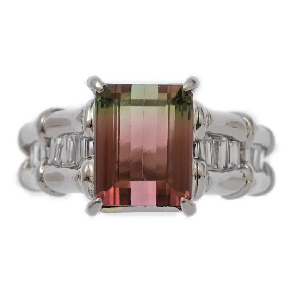 TM4.56ct/FD:0.46ct/バイカラートルマリン・ダイヤモンドリング・指輪/Pt900-11.4g/13号/#53/プラチナ 翌日配送可【♀】【N】【レディース】★■589171【中古】