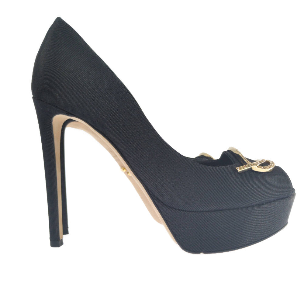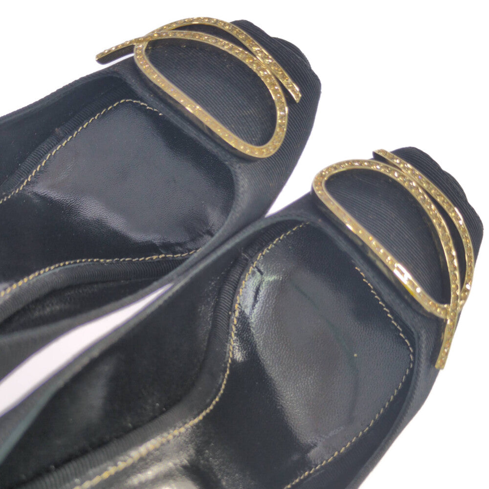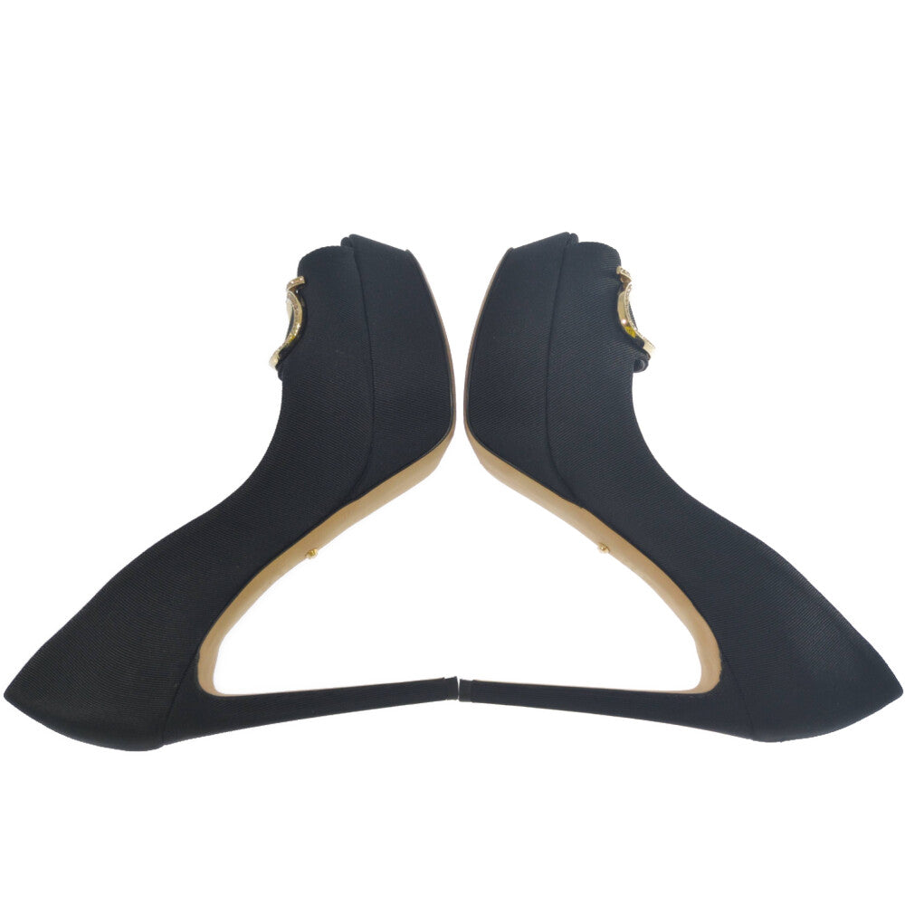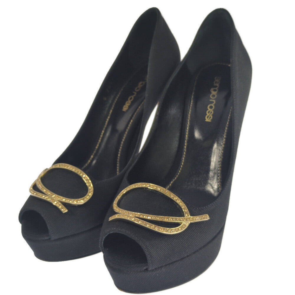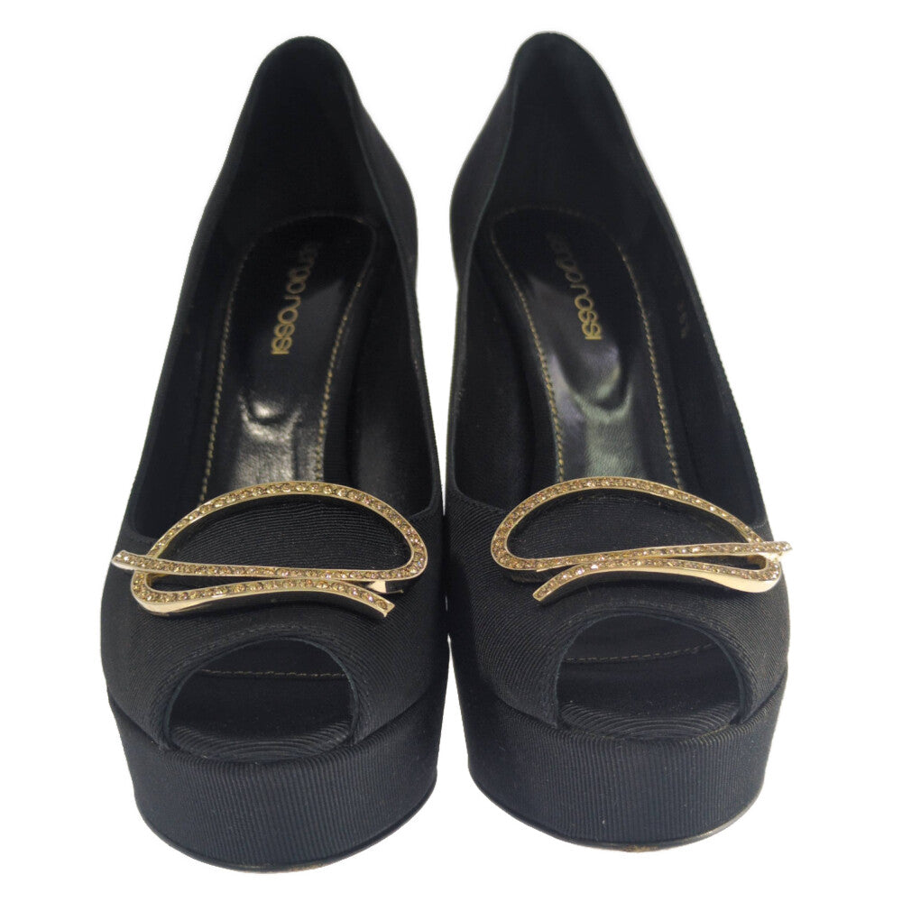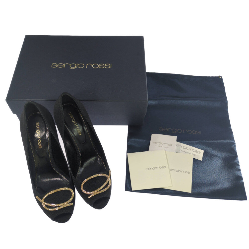 sergio rossi セルジオロッシ ビジューデザイン サテン キャンバス レザー ヒール パンプス 靴/36 1/2/ブラック/パーティー【オールシーズン】【♀】【B】【レディース】★■592151【中古】