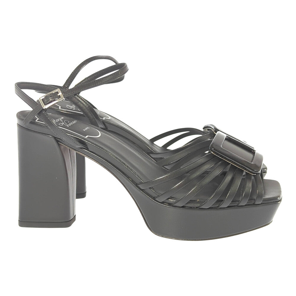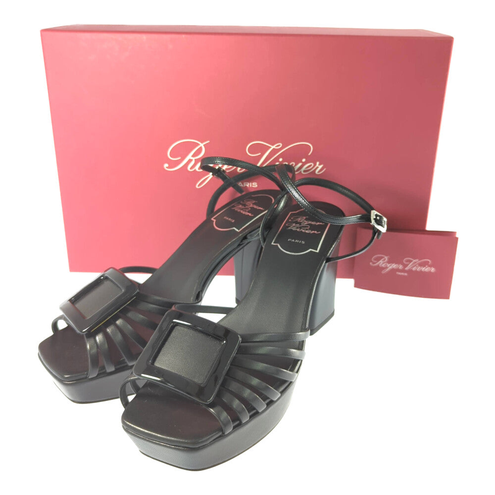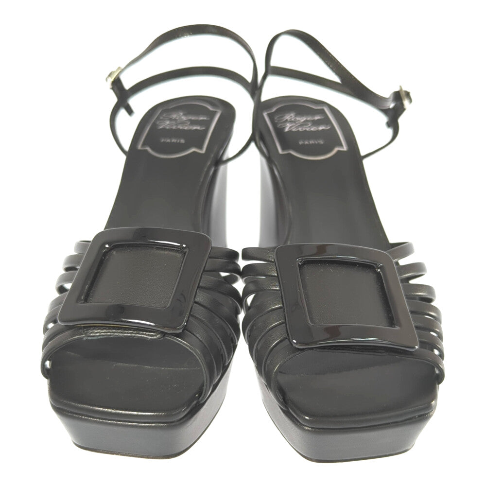 Roger Vivier ロジェヴィヴィエ エナメルバックル ストラップ サンダル靴/36/ブラック/ 翌日配送可【♀】【A】【レディース】★■587227【中古】