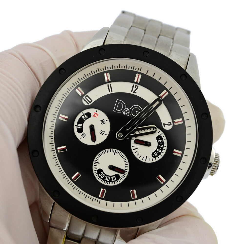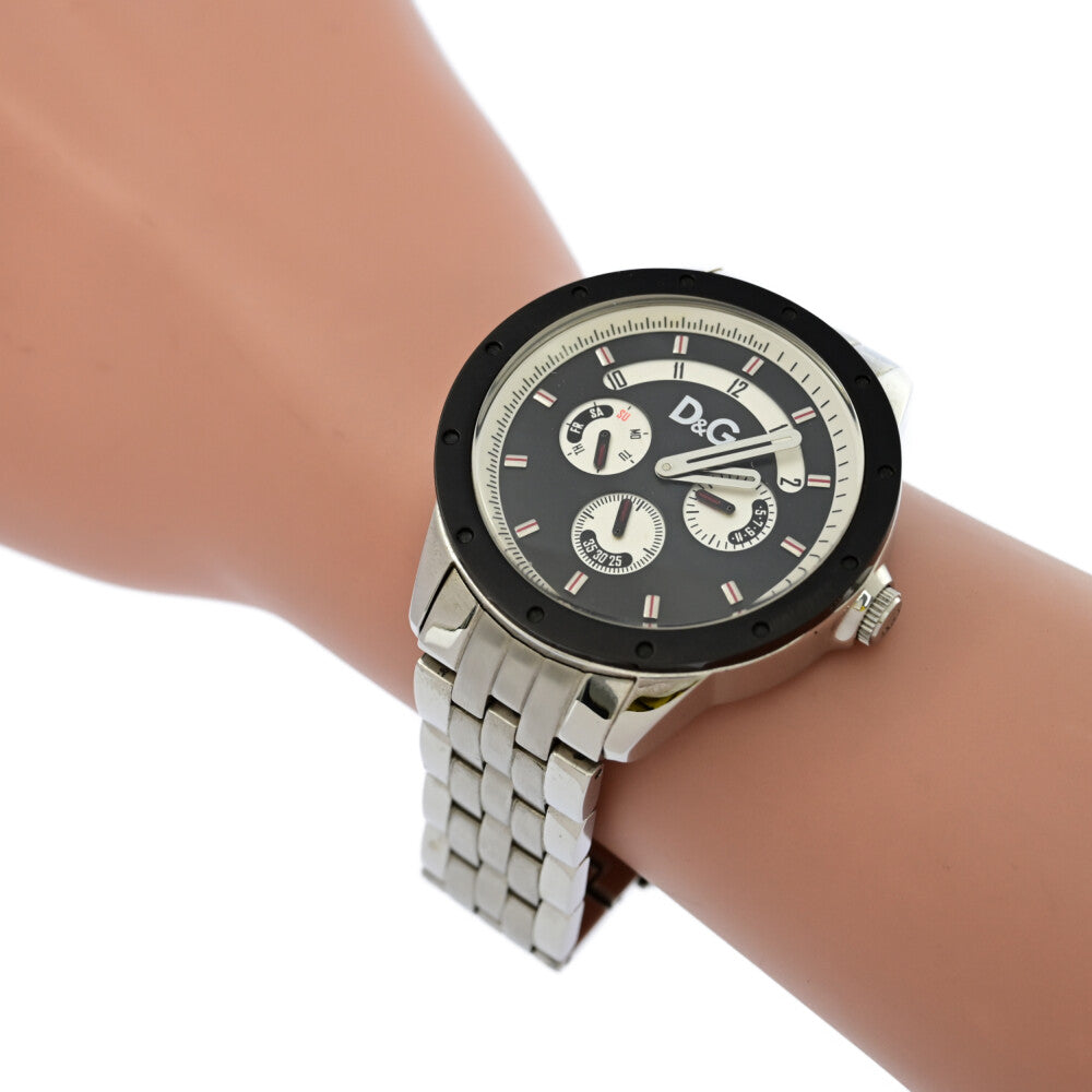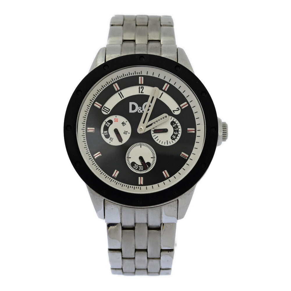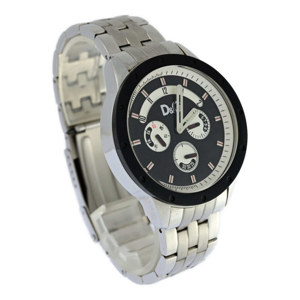 DOLCE & GABBANA ドルチェアンドガッバーナ ブラック文字盤 クォーツ 時計/SS/stainless steal-124.1g/ブラック×シルバー【♂】【A】【メンズ】★■555521【中古】